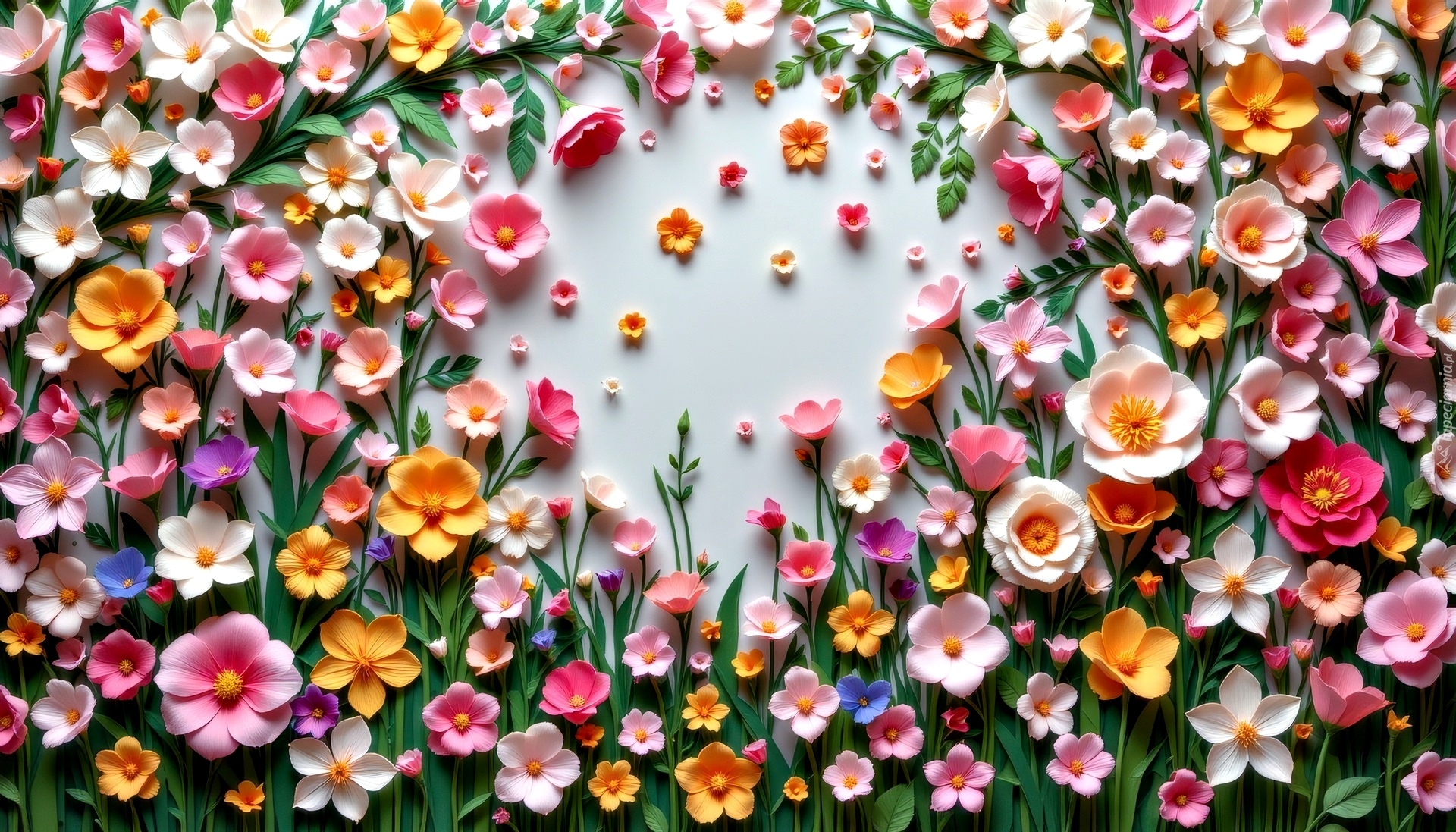 Edytor tapety: Drobne kolorowe kwiaty na białym tle