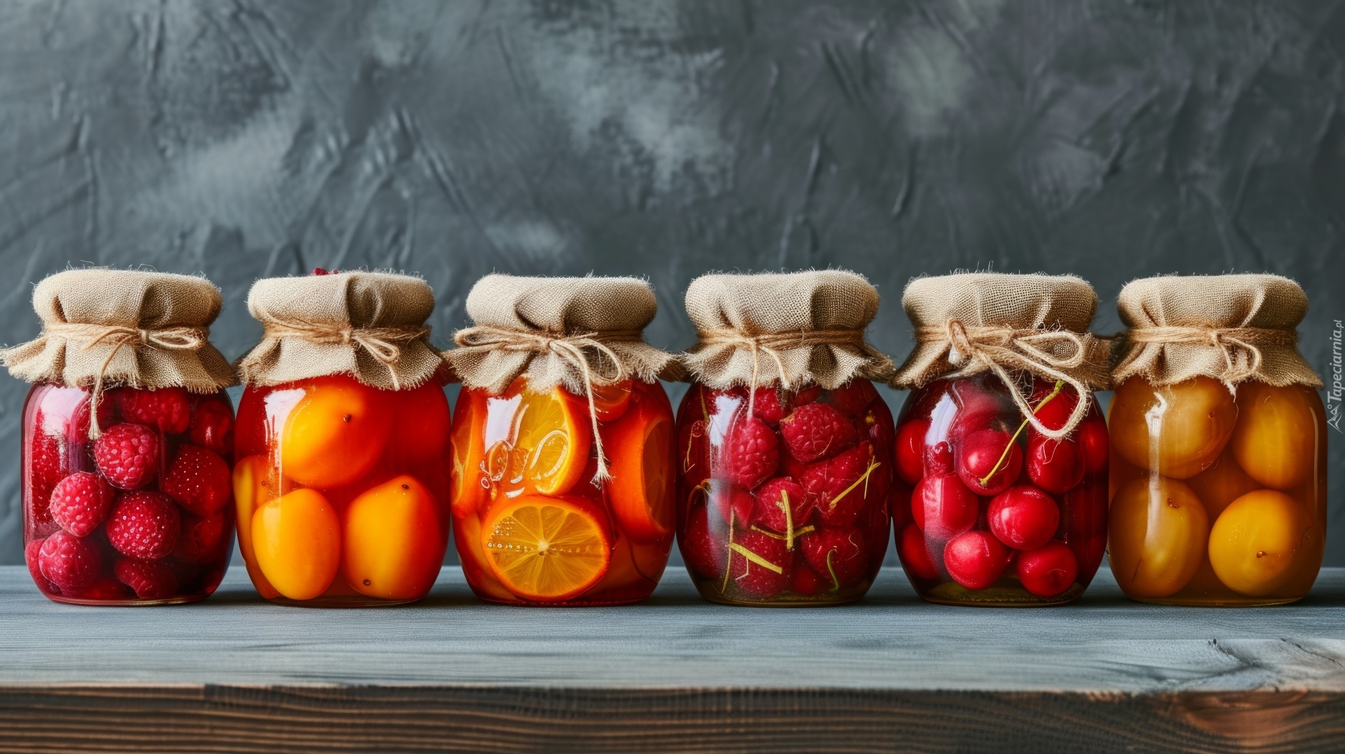 Edytor tapety: Kompoty w słoikach na desce