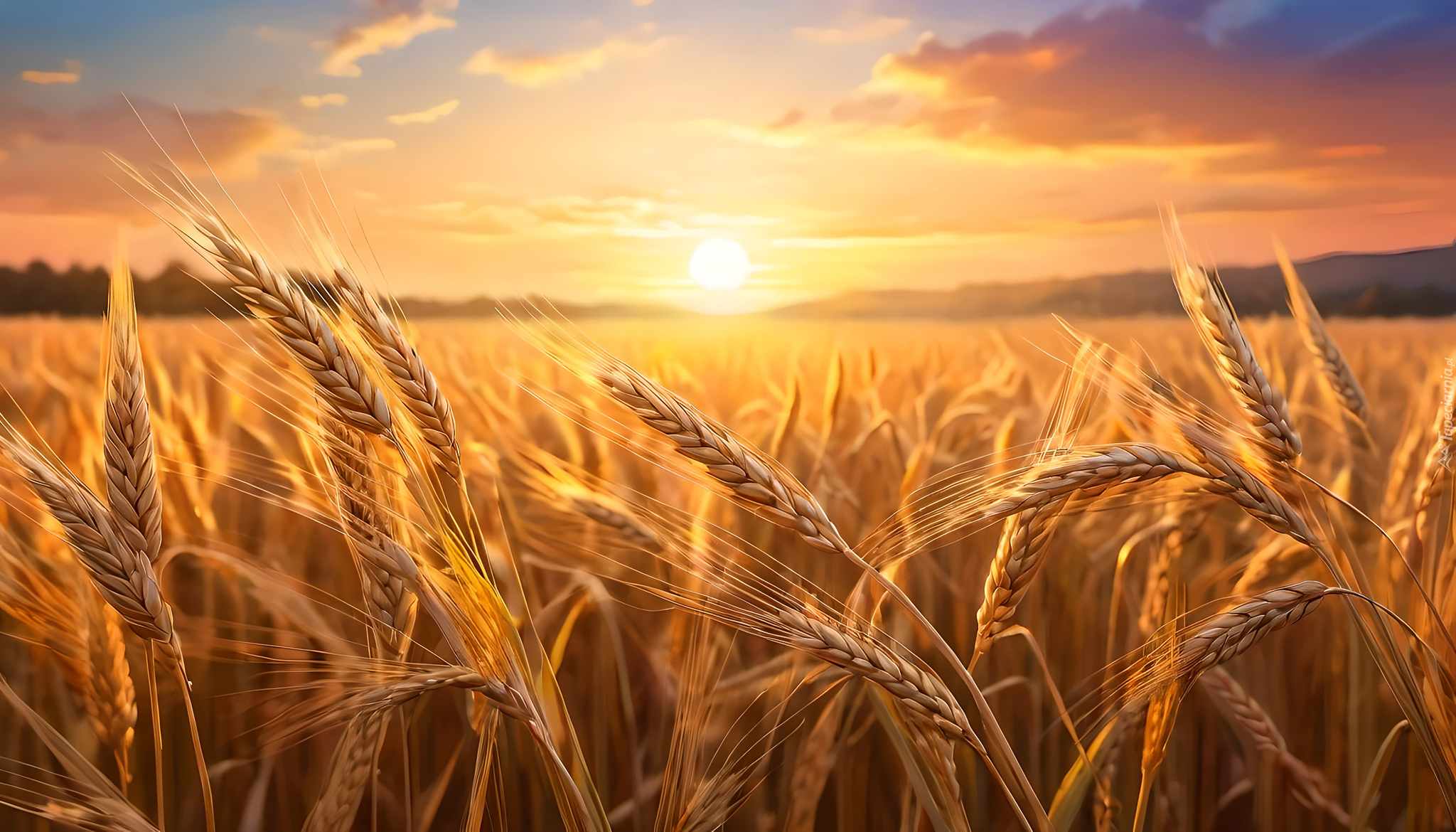 Edytor tapety: Kłosy zboża na polu o zachodzie słońca