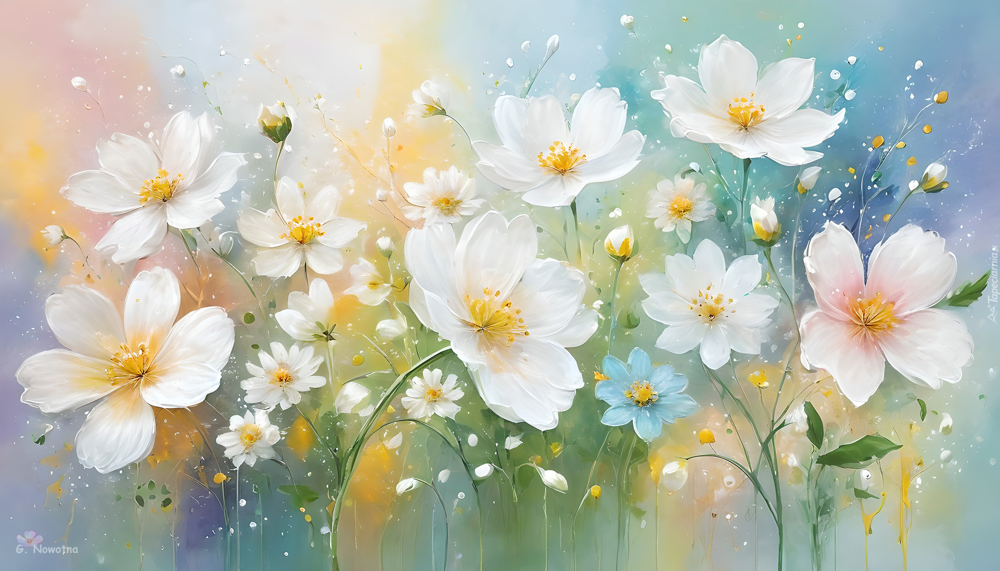 Edytor tapety: Grafika z białymi kwiatami na kolorowym tle