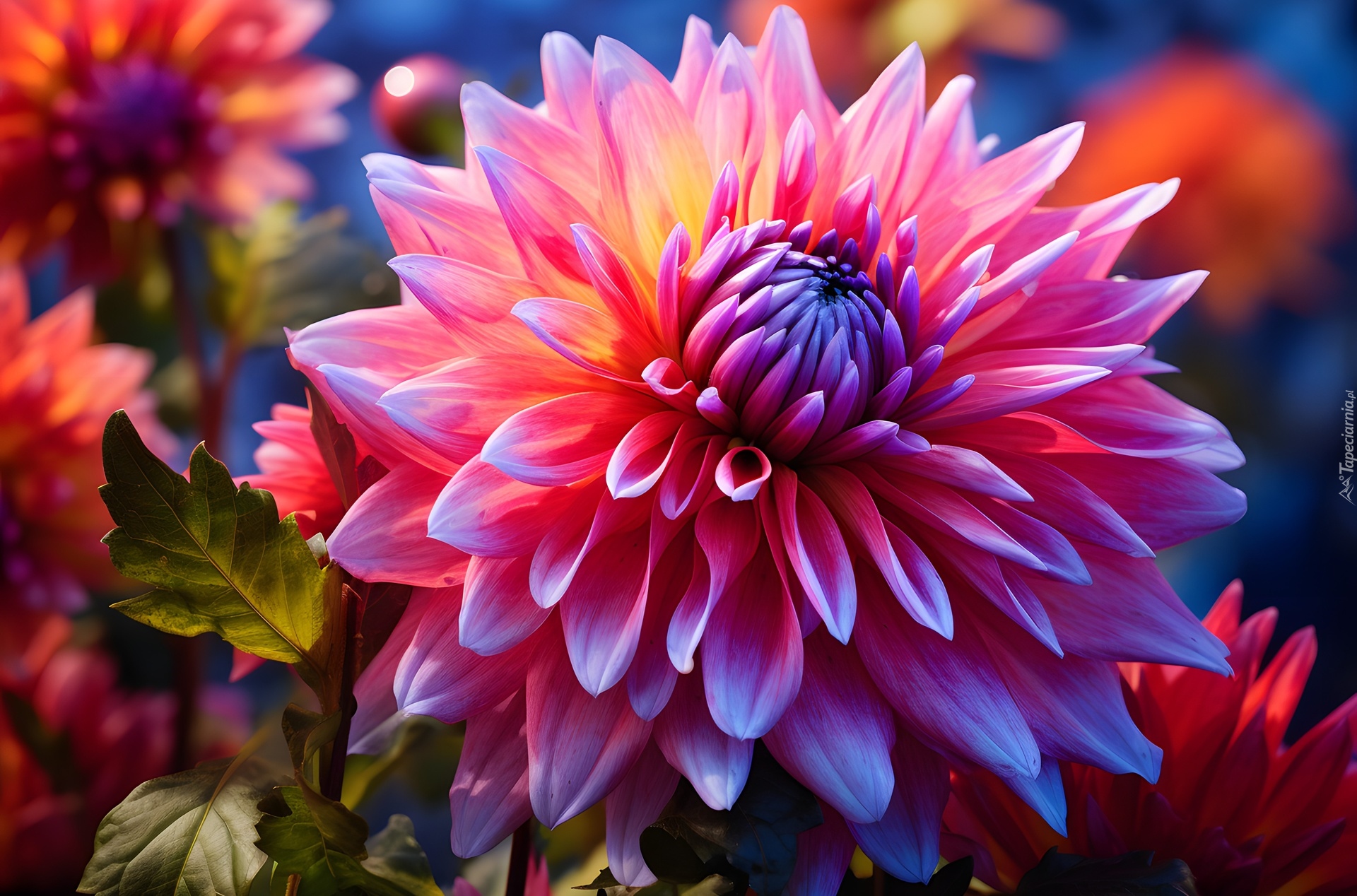 Edytor tapety: Rozkwitnięta kolorowa dalia w zbliżeniu