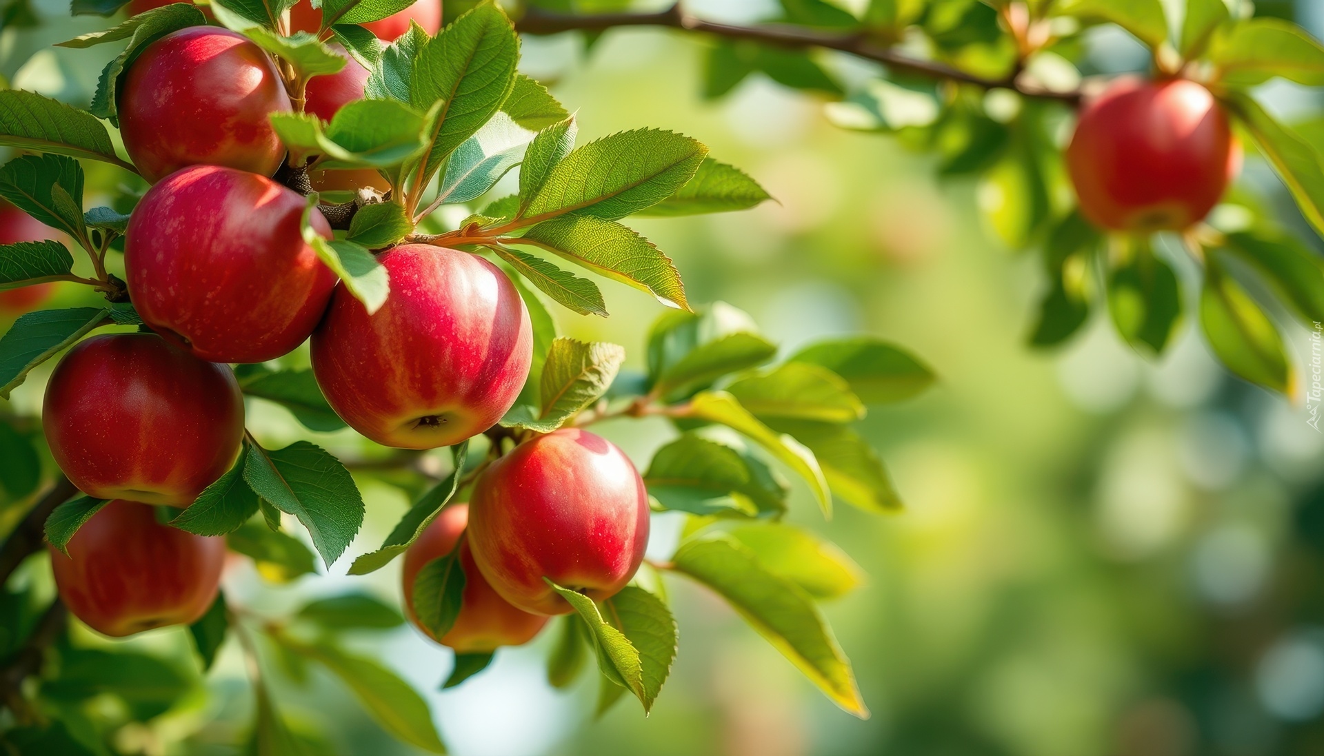 Edytor tapety: Czerwone jabłka na gałązce z liśćmi