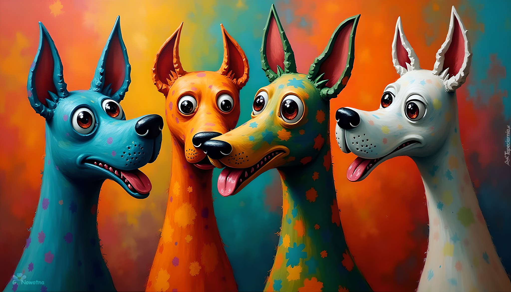 Edytor tapety: Grafika z czterema kolorowymi psami