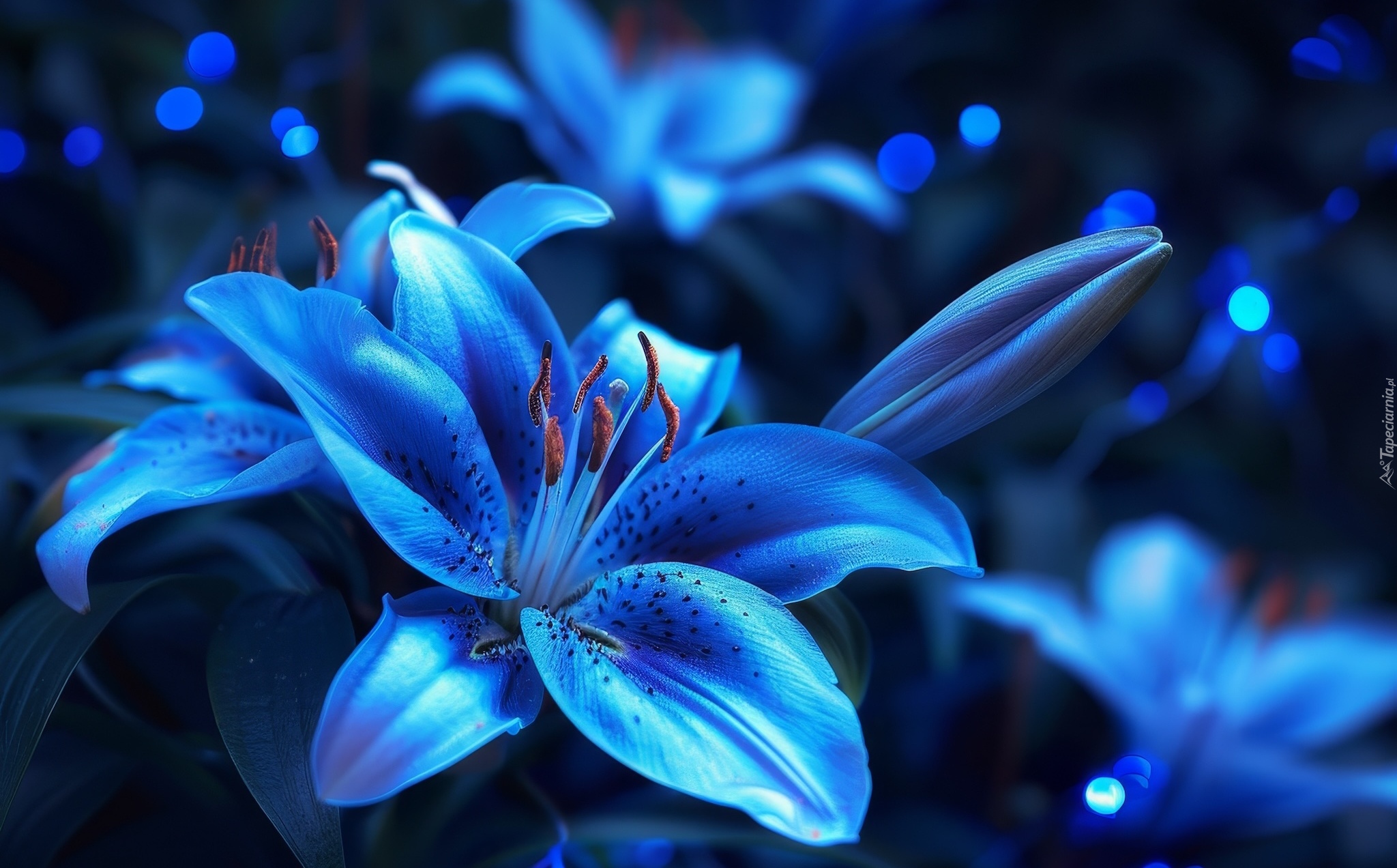 Edytor tapety: Rozświetlone niebieskie lilie