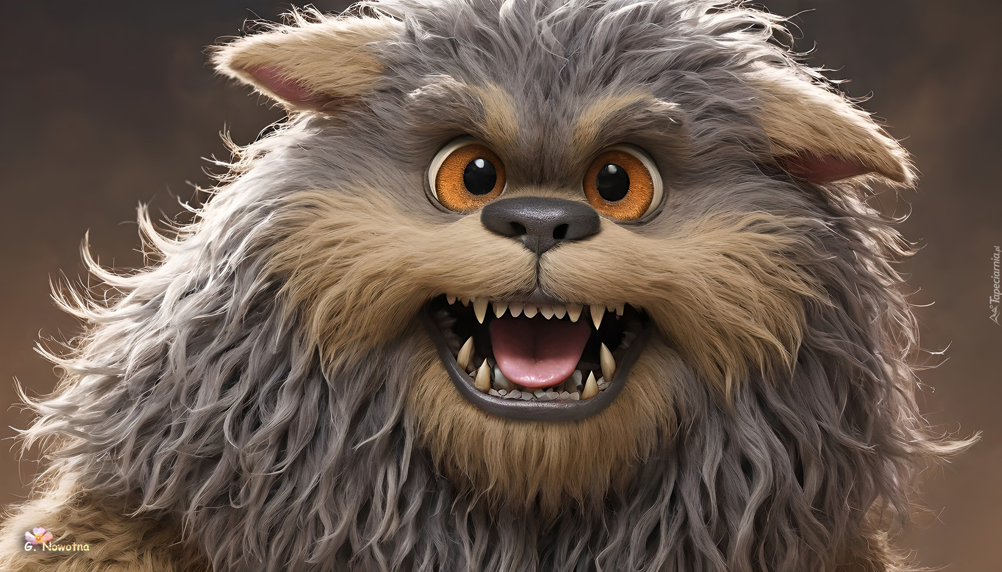 Edytor tapety: Szaro-brązowy kudłaty pies w grafice