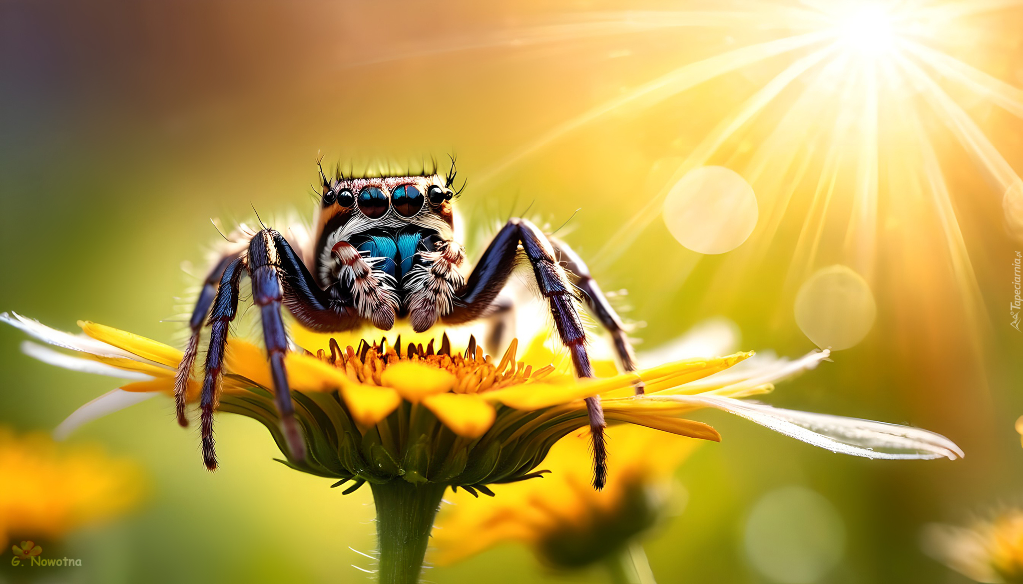 Edytor tapety: Pająk skakun na żółtym kwiatku