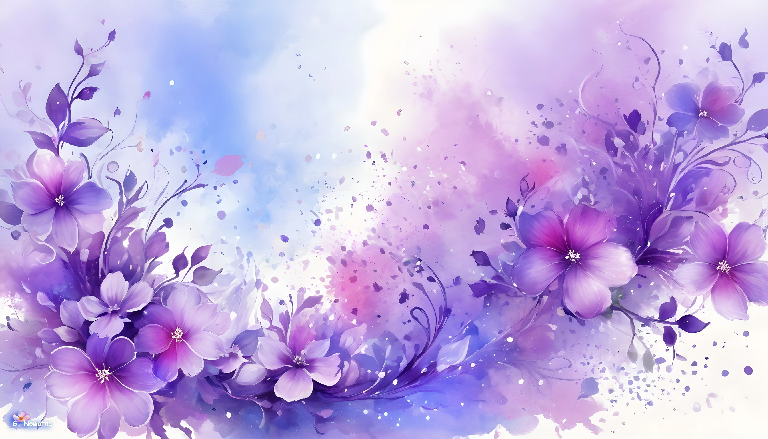 Edytor tapety: Grafika z fioletowo-różowymi kwiatami