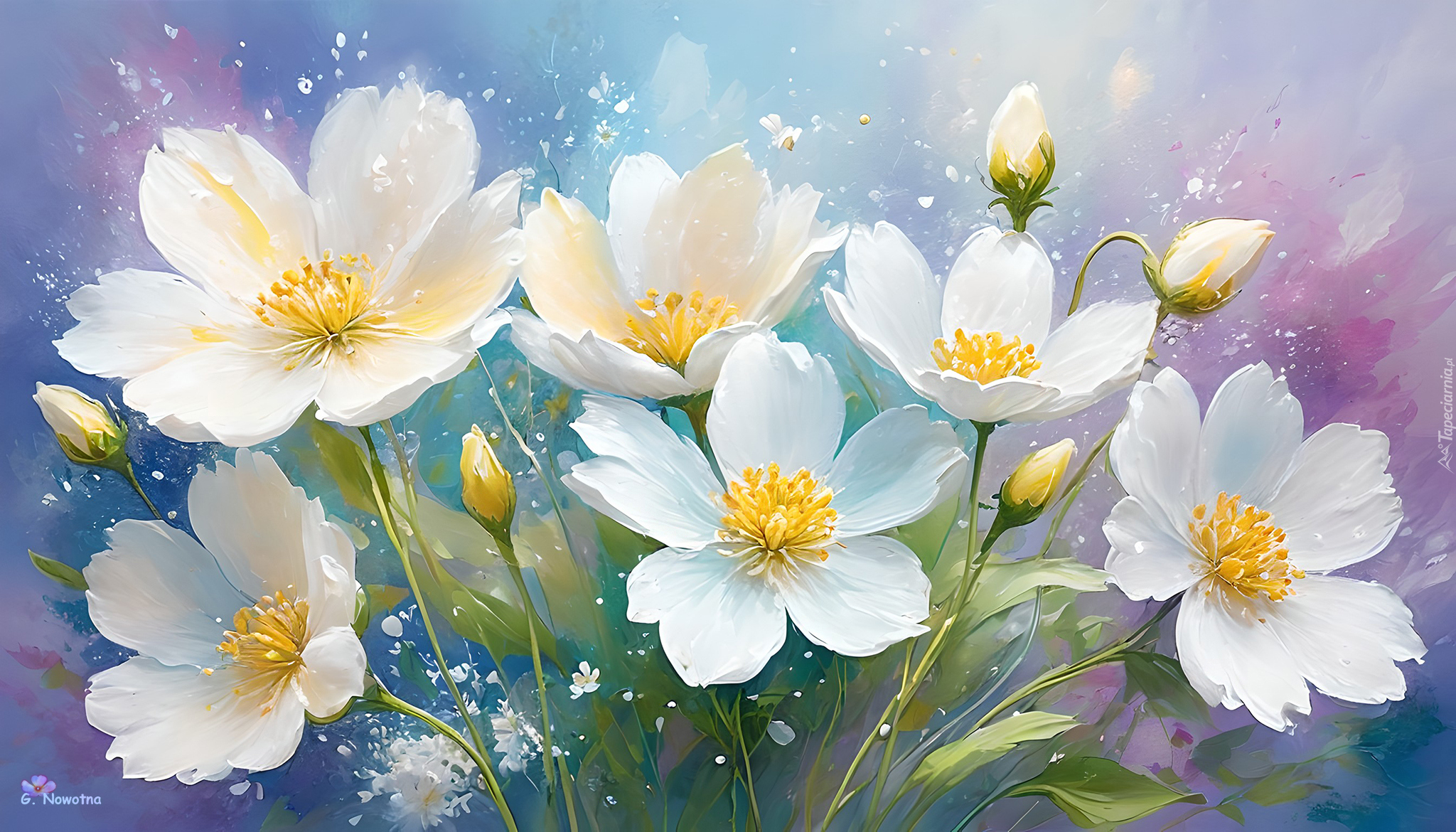 Edytor tapety: Białe kwiaty na kolorowym tle