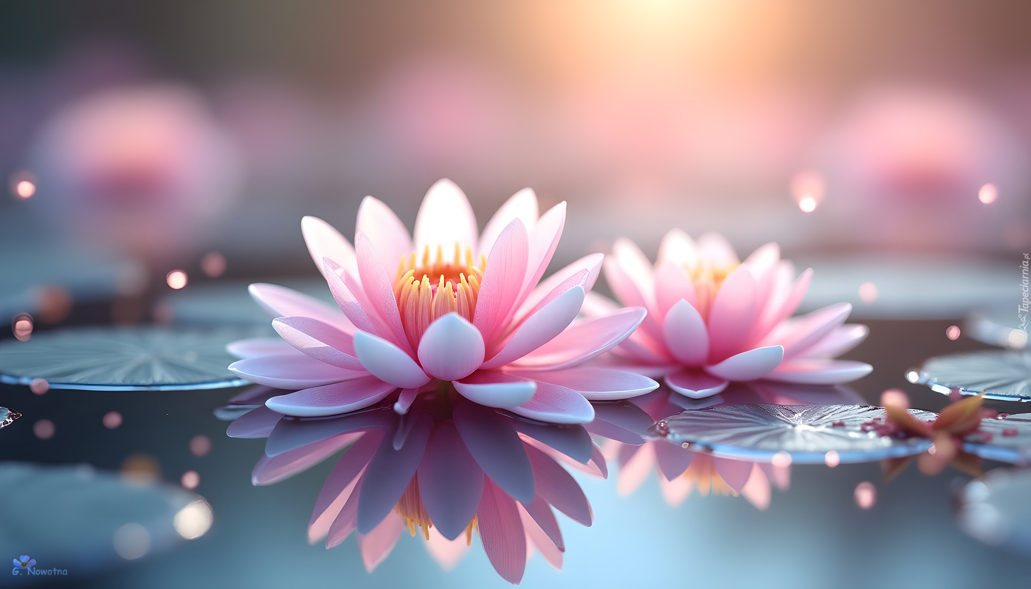 Edytor tapety: Rozkwitnięte różowe lilie wodne