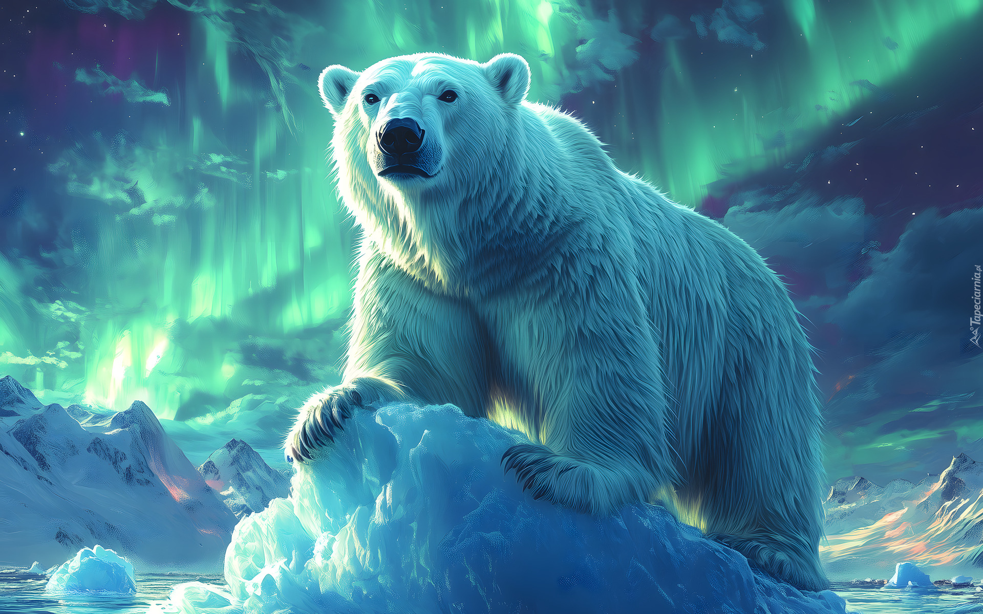 Edytor tapety: Niedźwiedź polarny i zorza polarna w tle