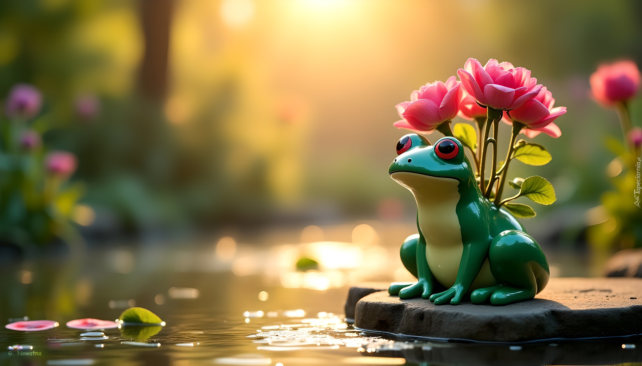 Edytor tapety: Doniczka w kształcie żaby z różami