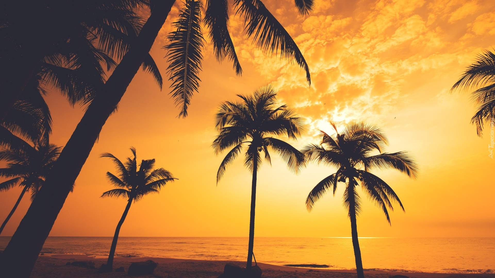 Edytor tapety: Palmy na tle nieba zachodzącego słońca
