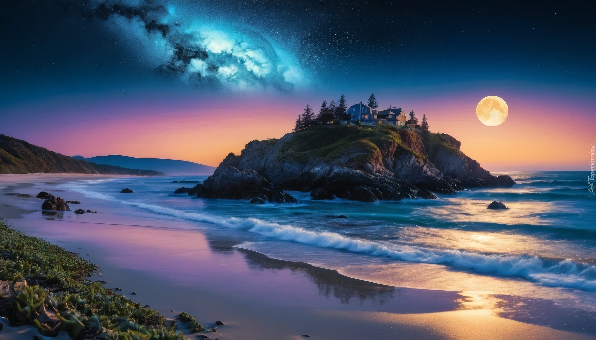 Edytor tapety: Światlo księżyca padające na brzeg morza