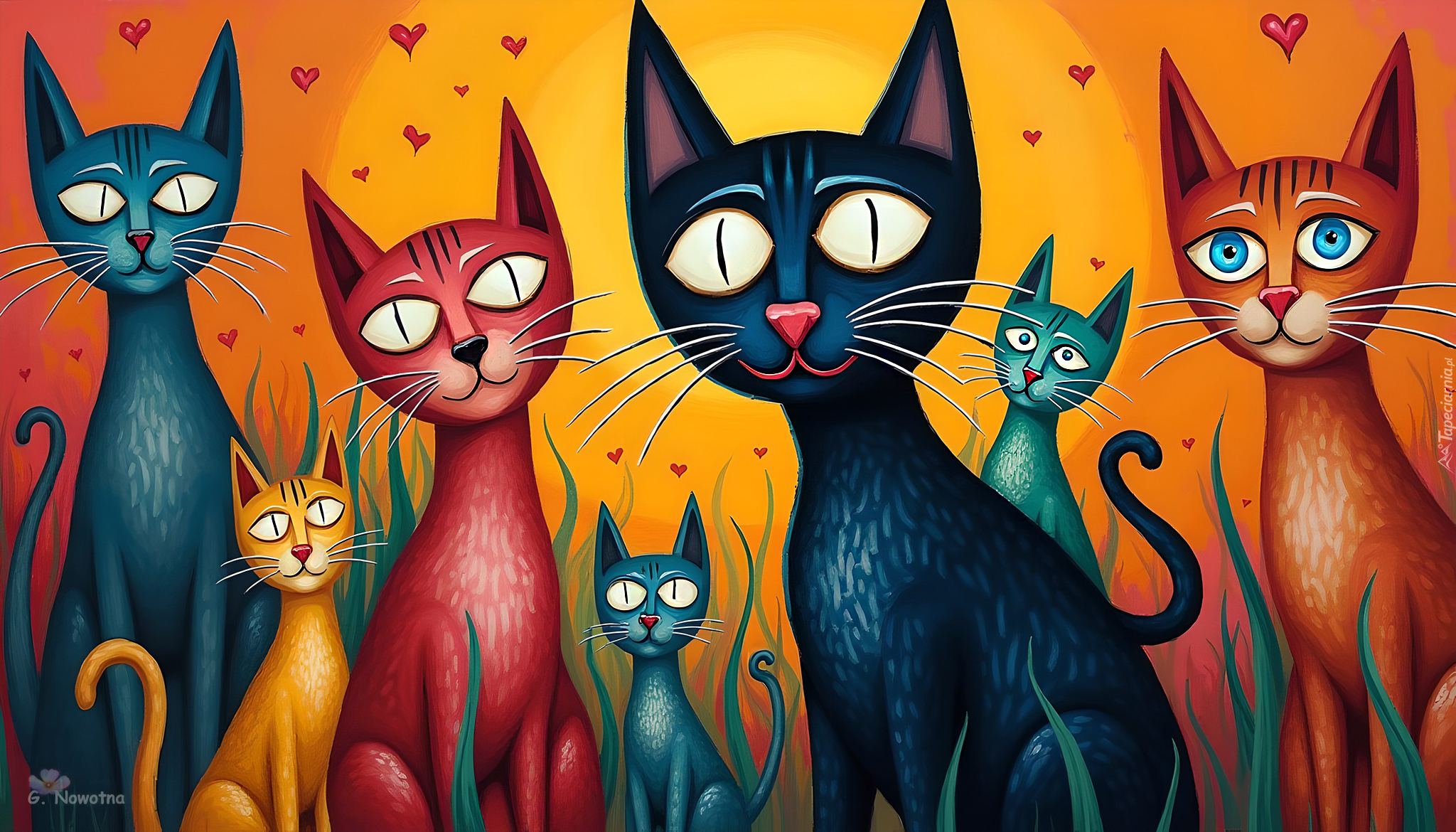 Edytor tapety: Kolorowe duże i małe koty w grafice
