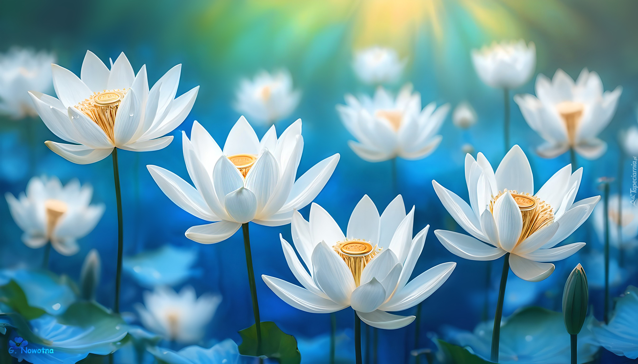Edytor tapety: Białe lotosy w promieniach słońca
