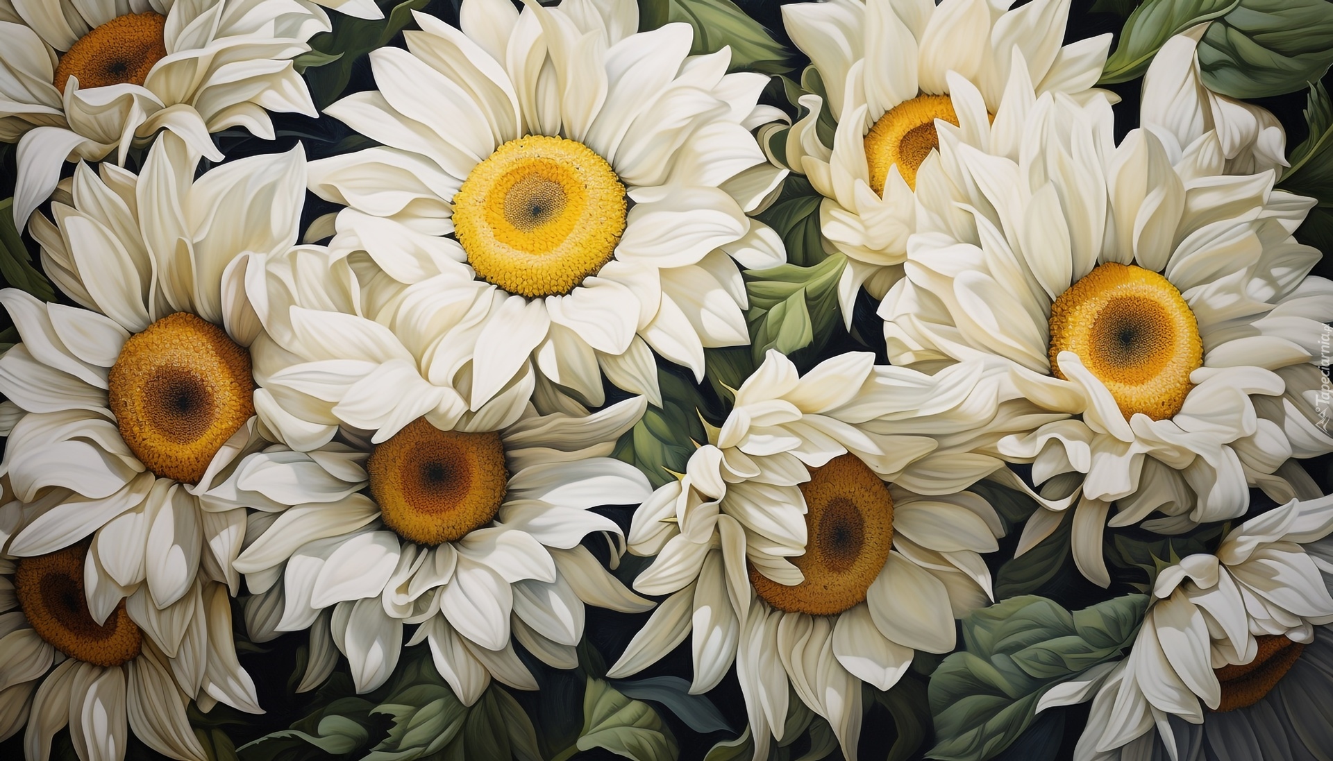 Edytor tapety: Rozkwitnięte białe kwiaty w grafice