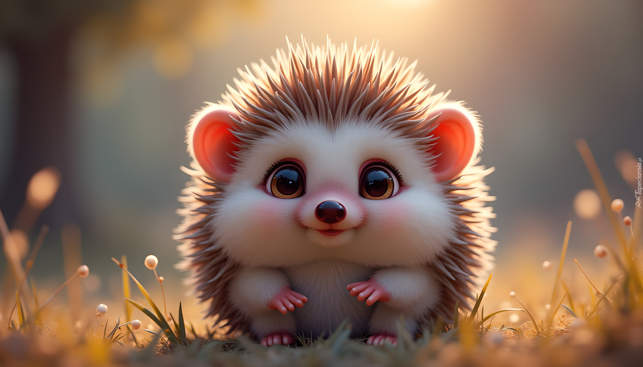 Edytor tapety: Słodki jeż na rozświetlonej trawie w grafice