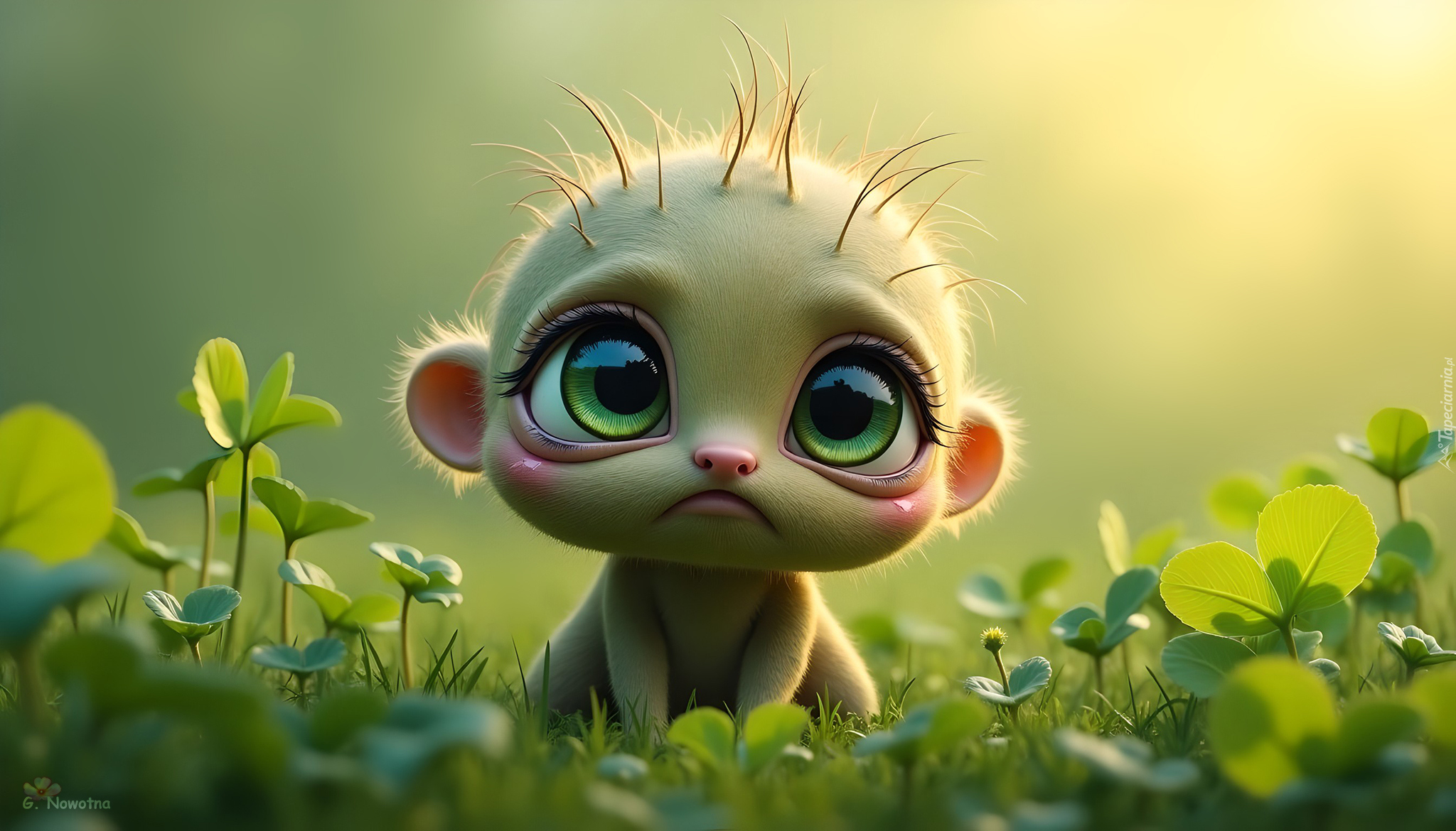 Edytor tapety: Smutny stworek z dużymi oczami w koniczynie