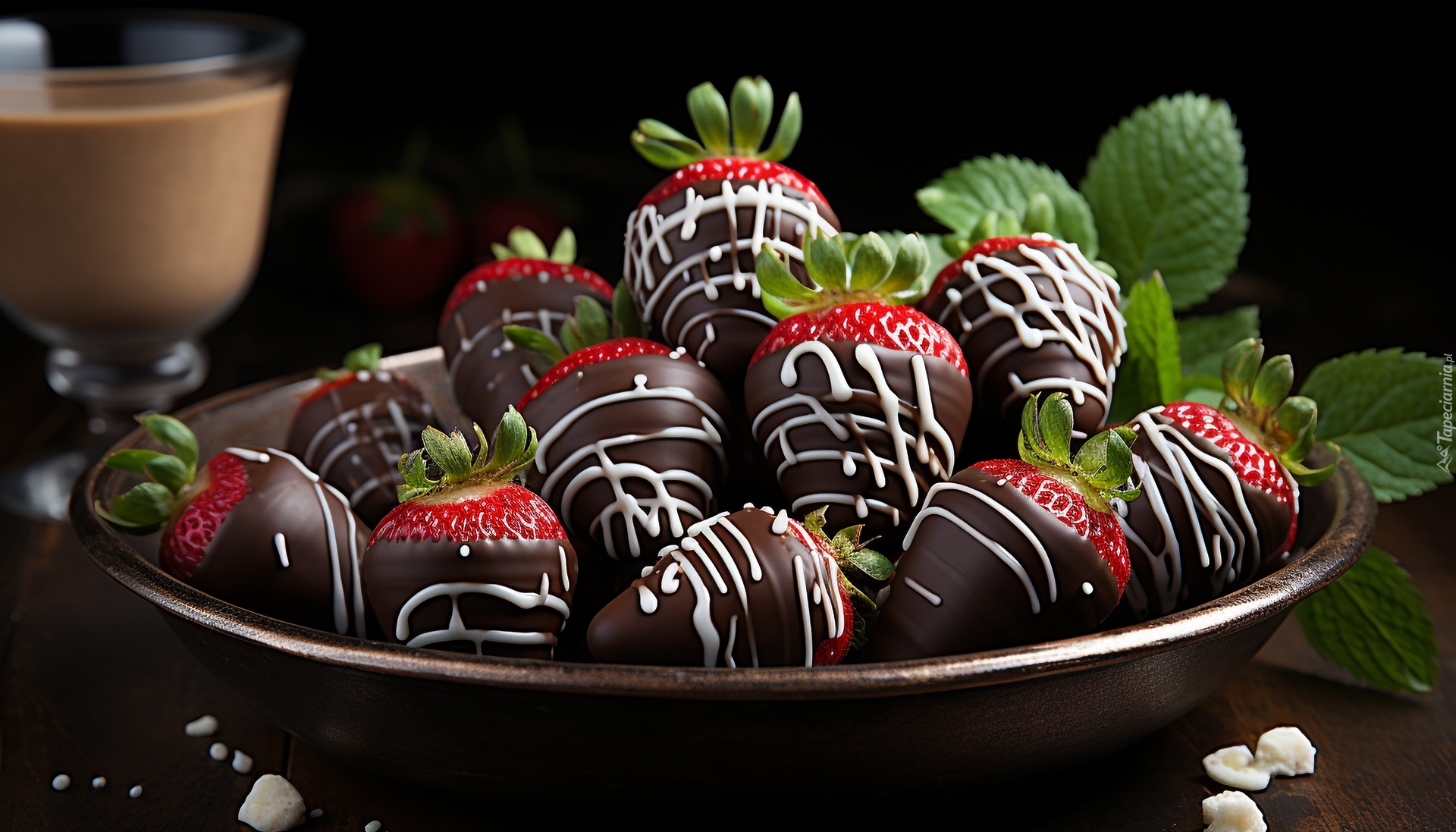 Edytor tapety: Truskawki oblane czekoladą na talerzu