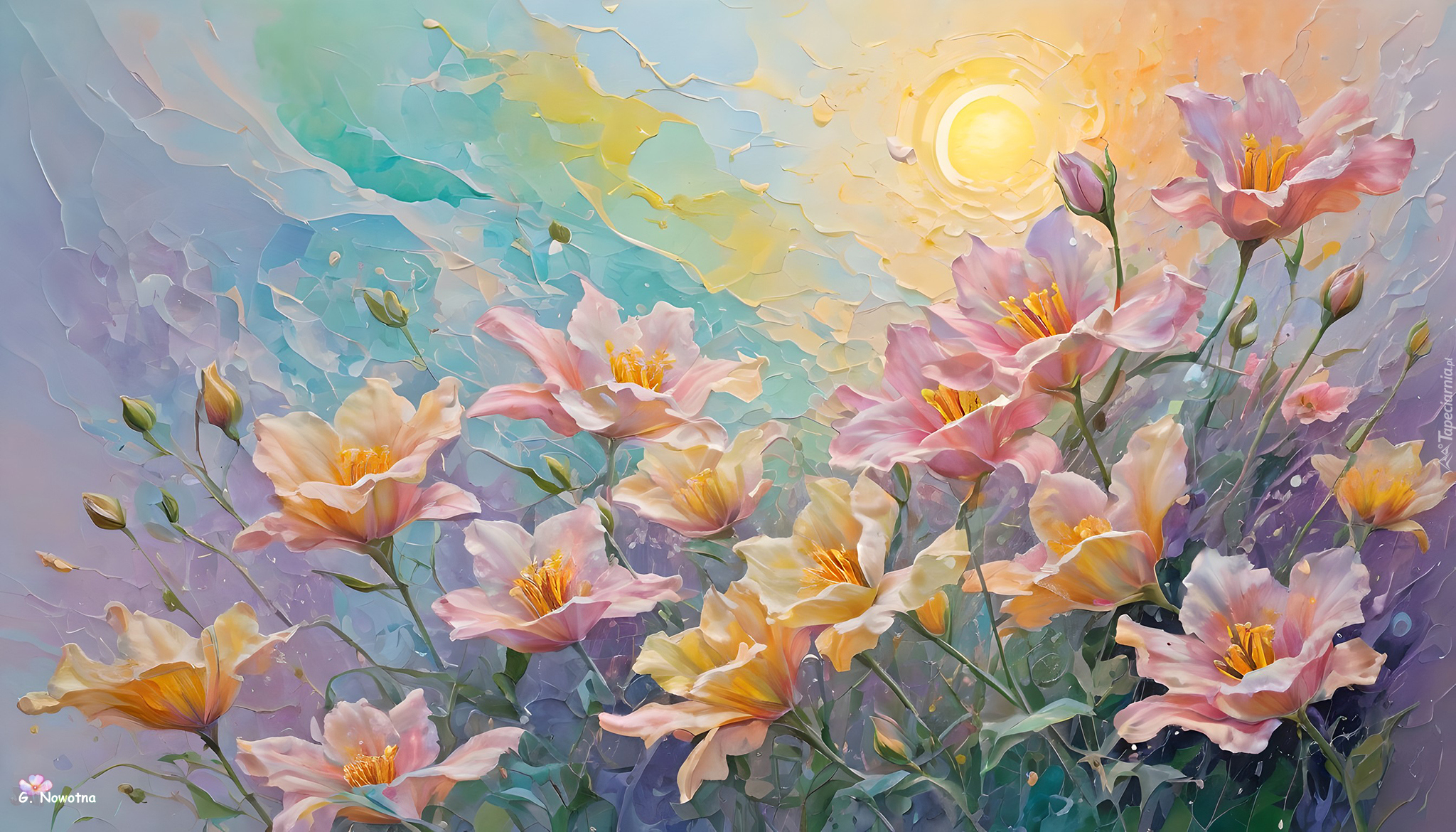 Edytor tapety: Różowe i żółte kwiaty w grafice