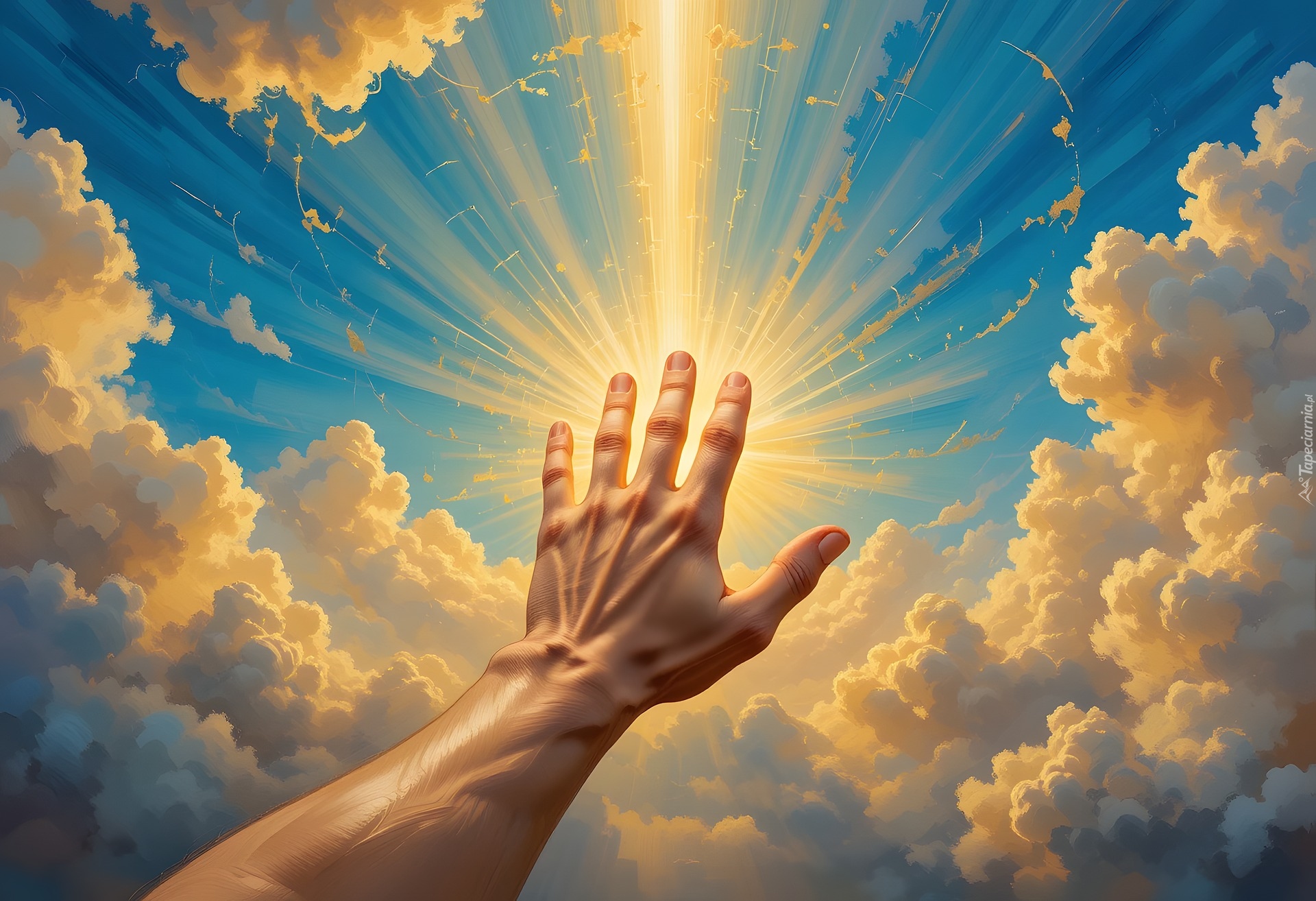 Edytor tapety: Wyciągnięta dłoń w kierunku promieni słonecznych