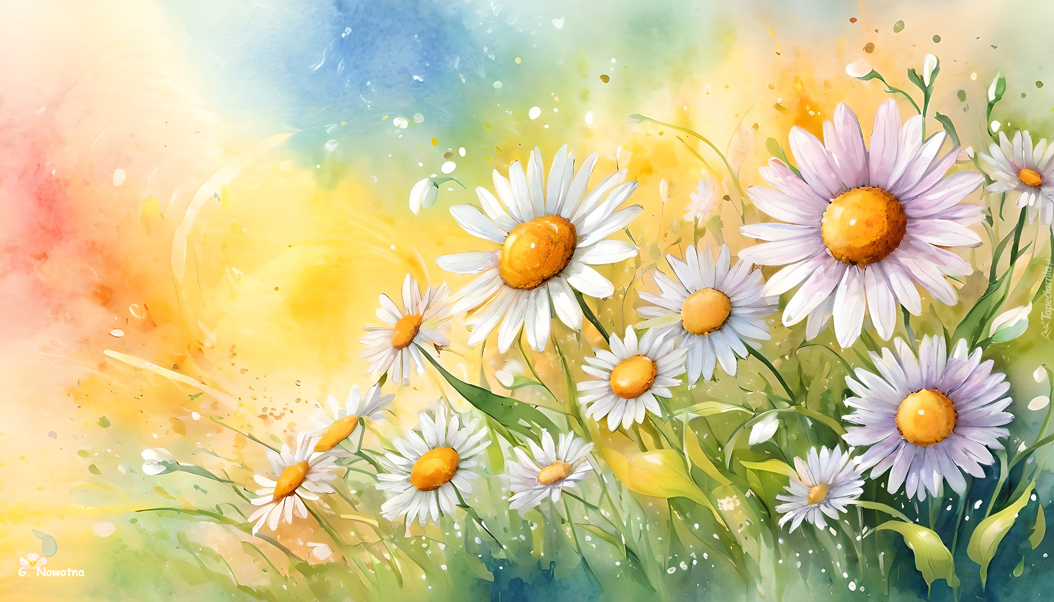 Edytor tapety: Margerytki na kolorowym tle w grafice