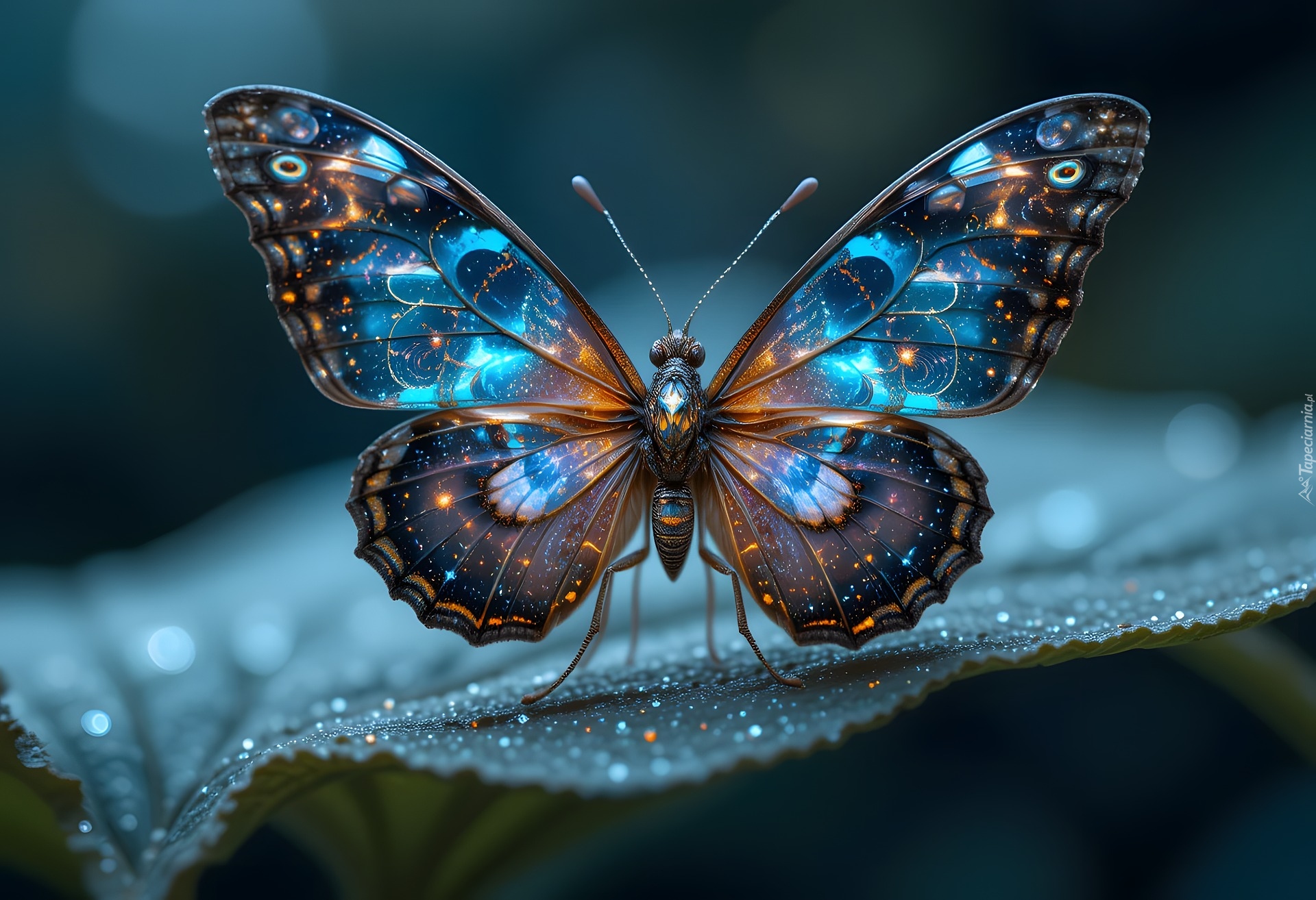 Edytor tapety: Kolorowy motyl na liściu