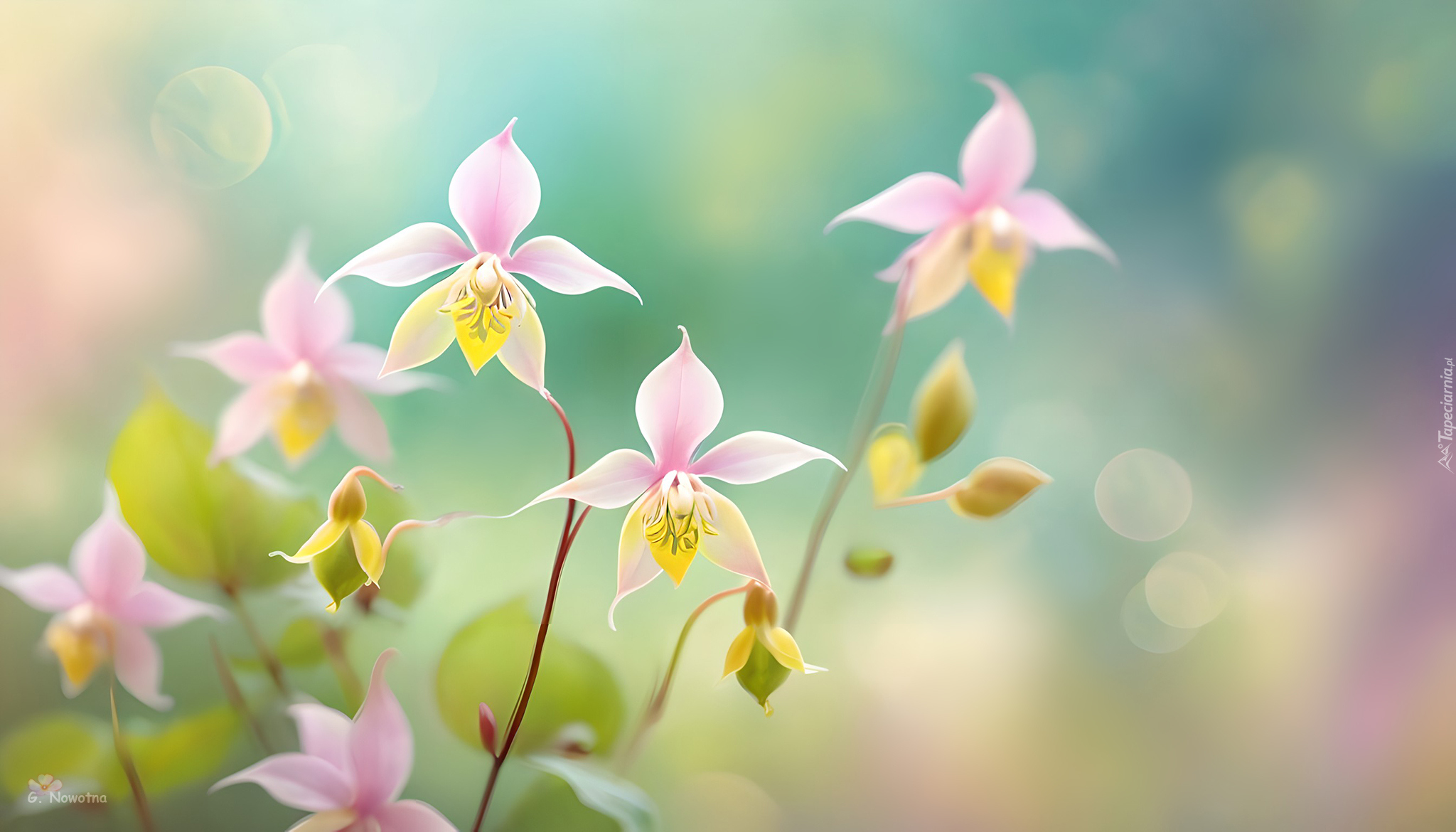 Edytor tapety: Kwiaty epimedium na kolorowym tle w grafice