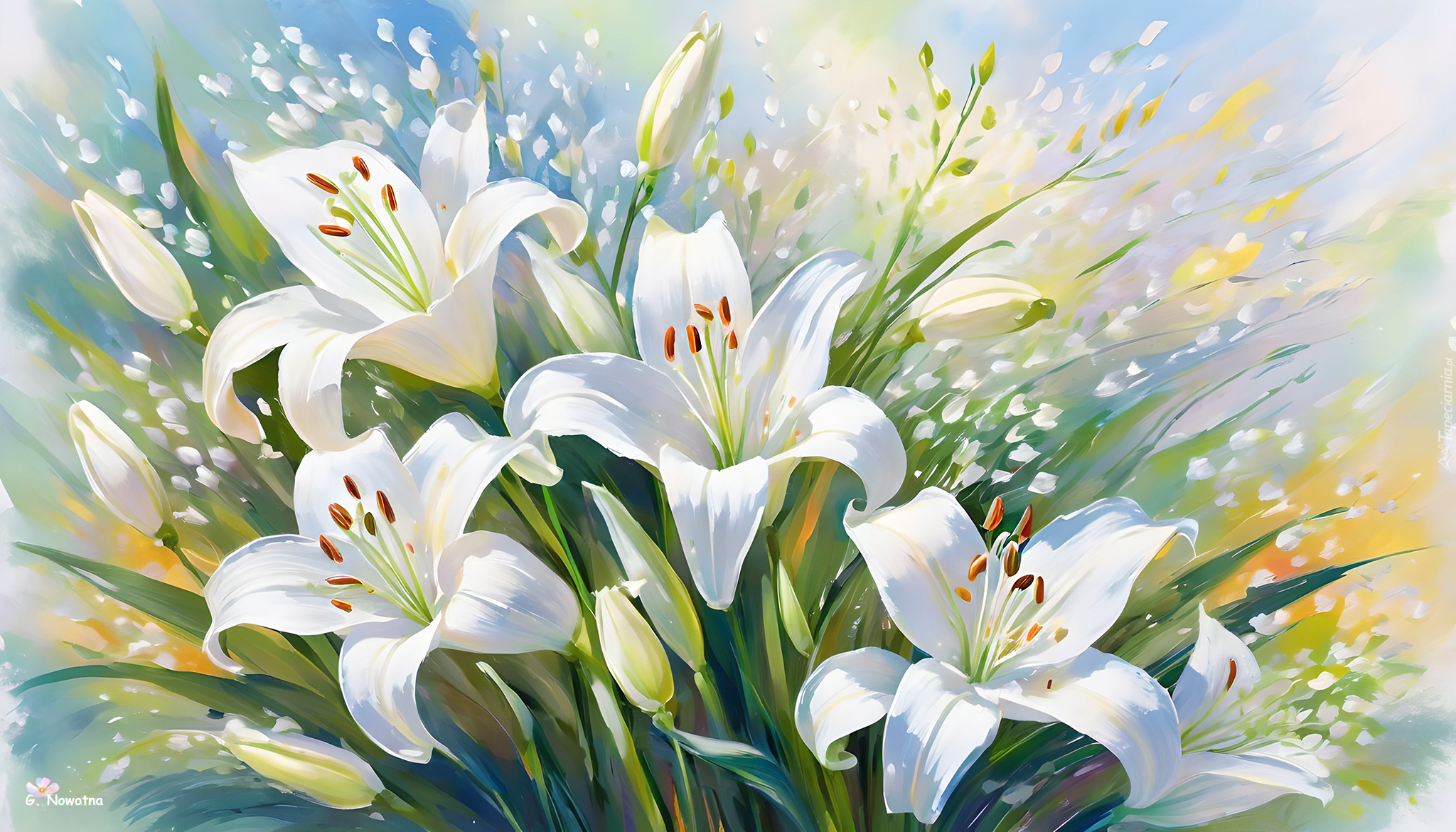 Edytor tapety: Grafika z białymi liliami oraz pąkami
