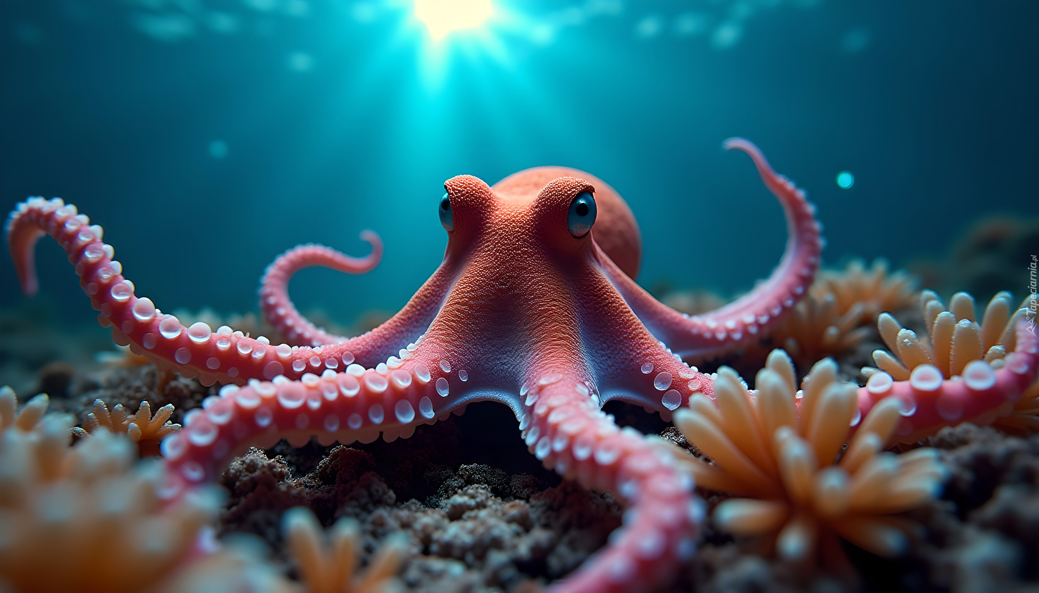 Edytor tapety: Ośmiornica i koralowce w morzu