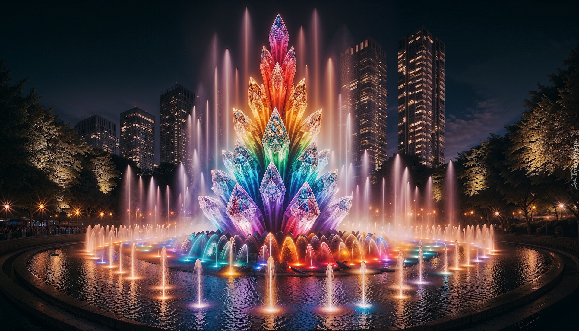 Edytor tapety: Rozświetlona na kolorowo fontanna