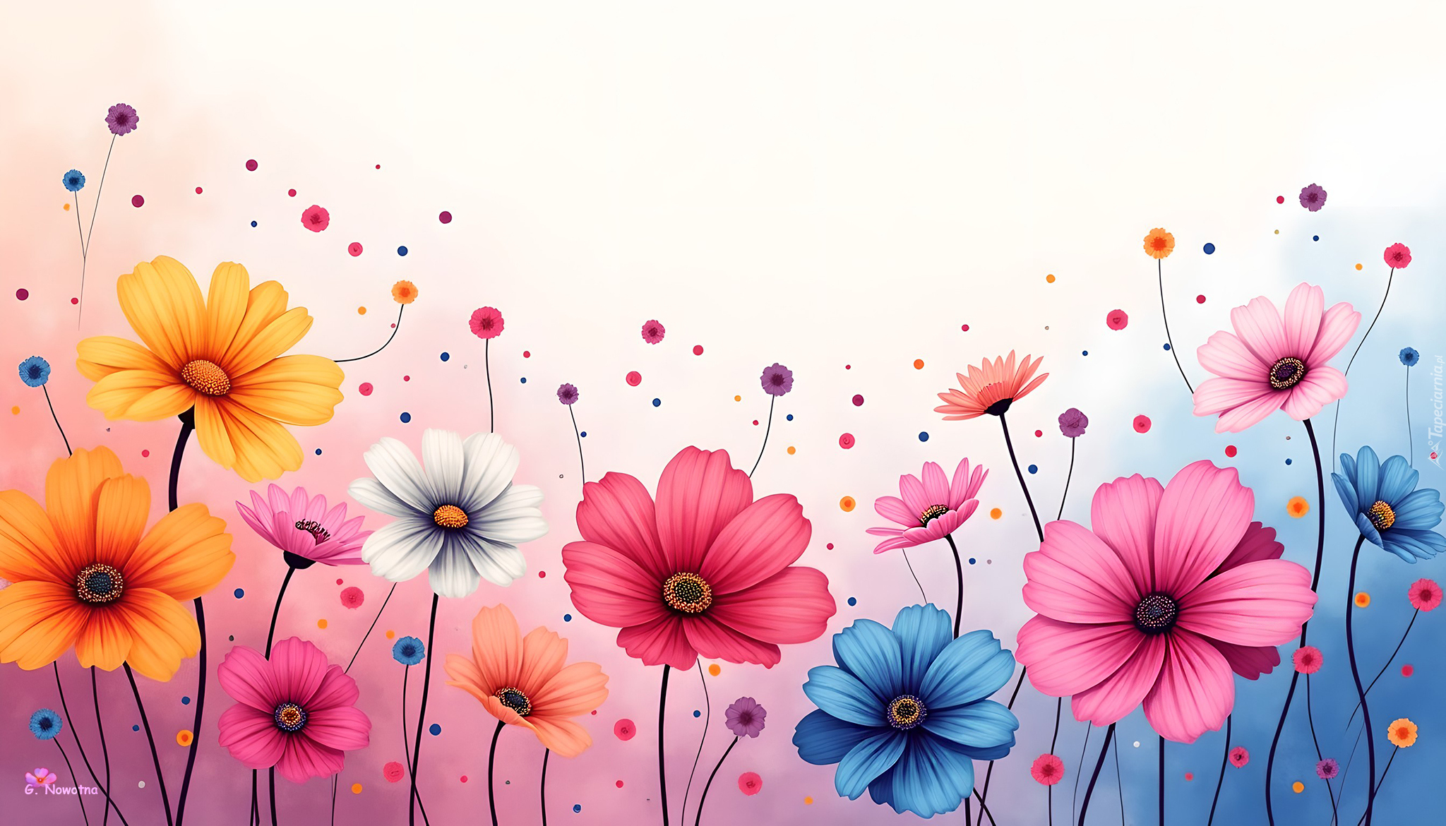 Edytor tapety: Kolorowe kwiaty na jasnym tle