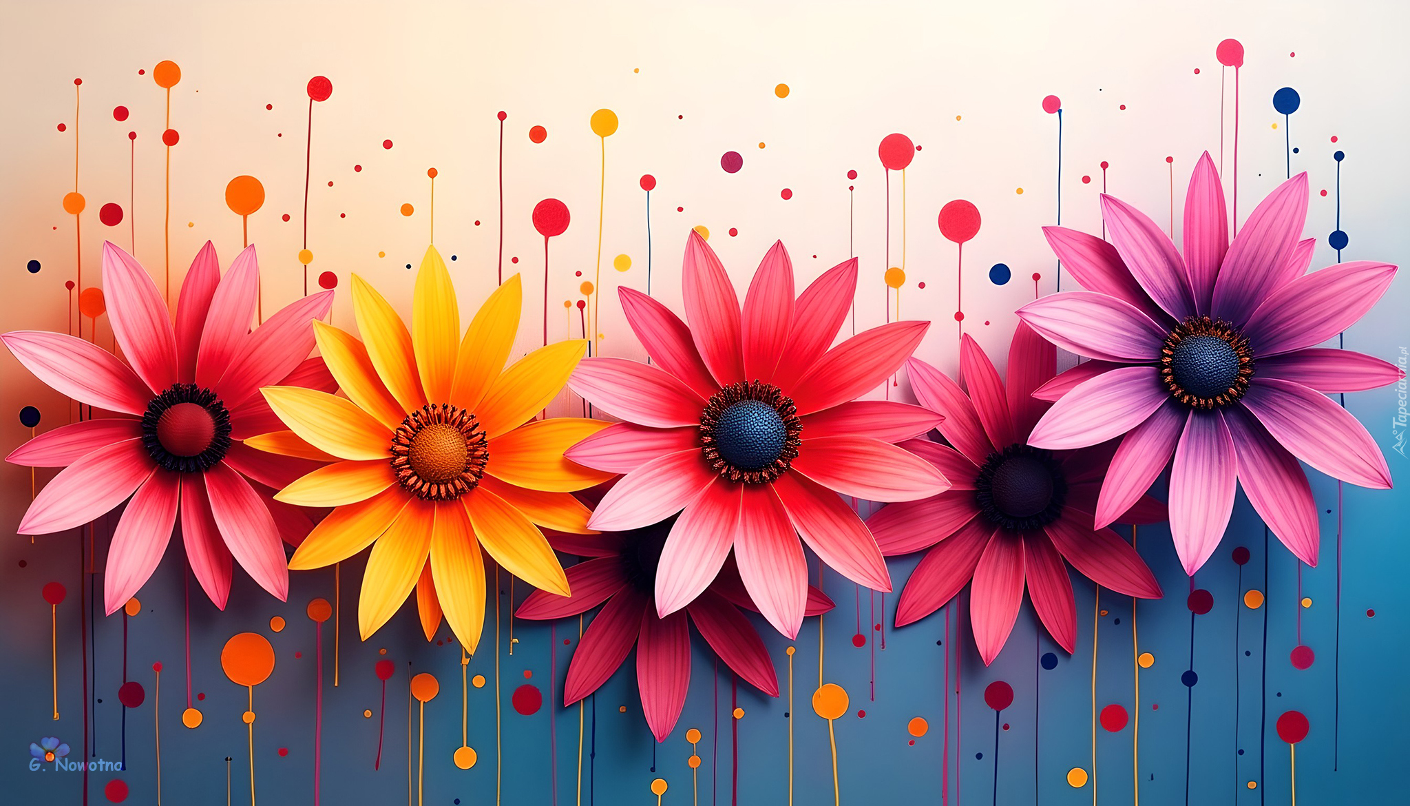 Edytor tapety: Kolorowe kwiaty na dwukolorowym tle