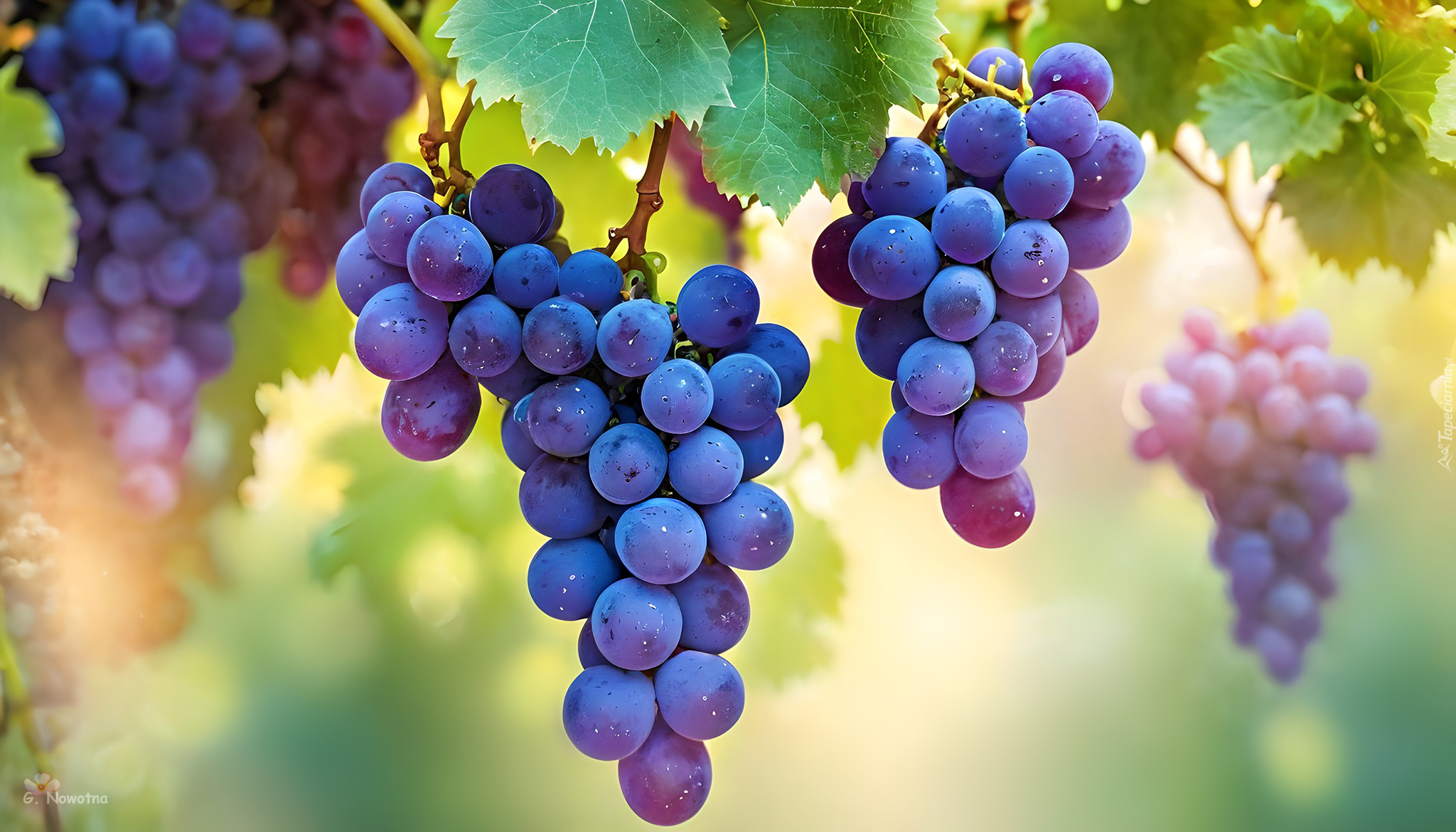 Edytor tapety: Kiście ciemnych winogron na gałęzi w grafice