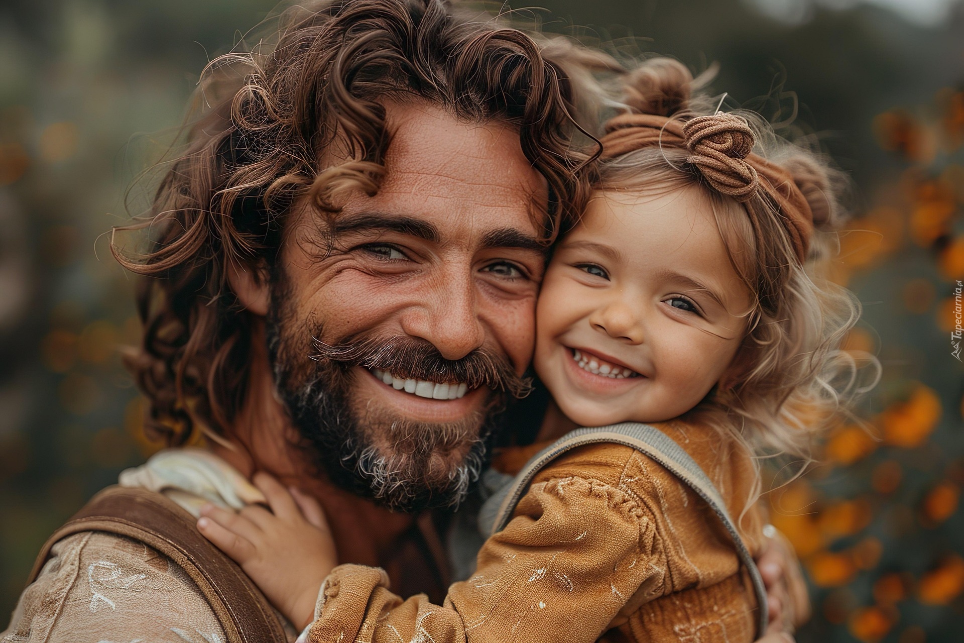 Edytor tapety: Uśmiechnięty ojciec i córka