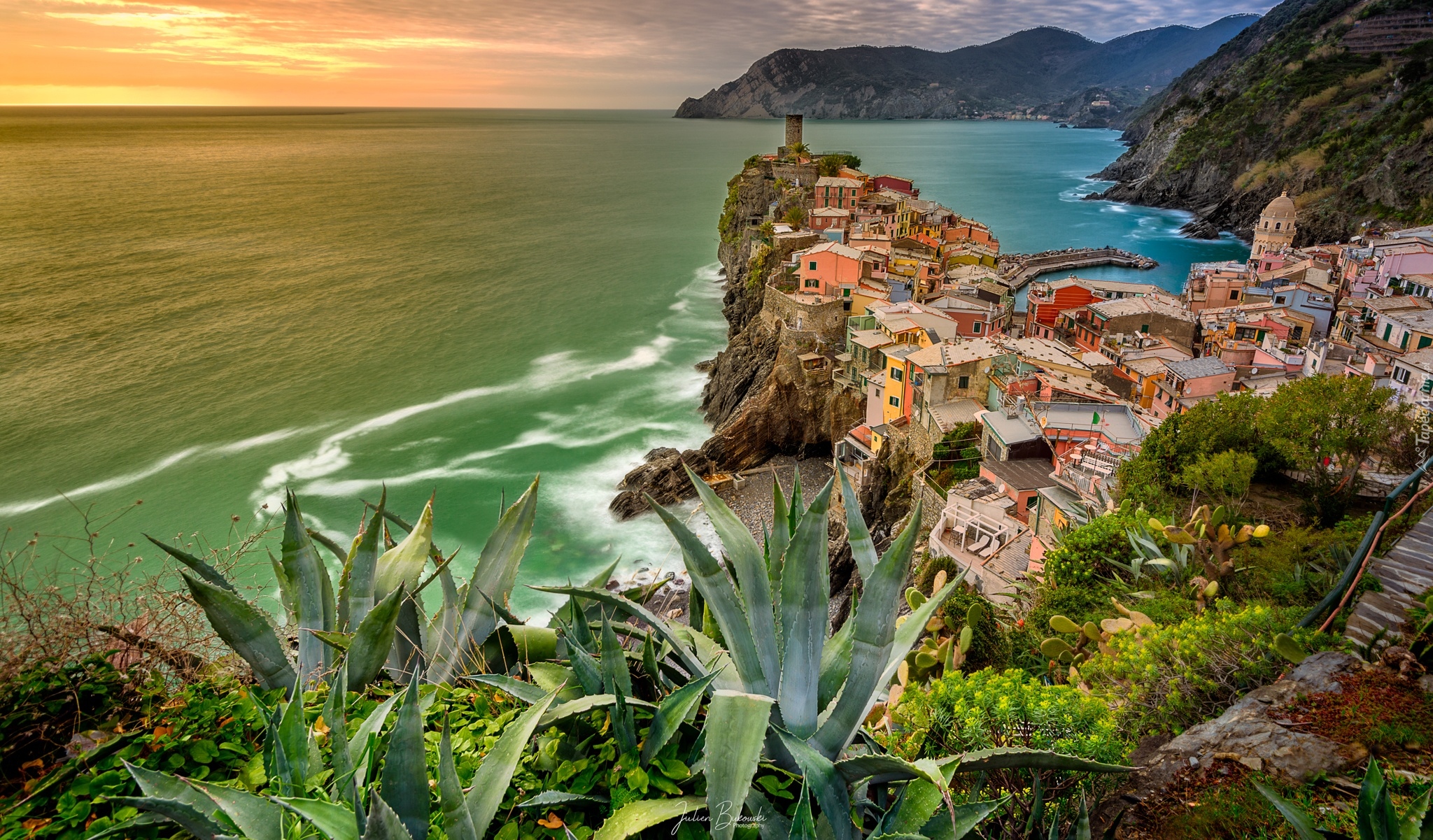 Edytor tapety: Góry i miasteczko Vernazza nad Morzem Liguryjskim