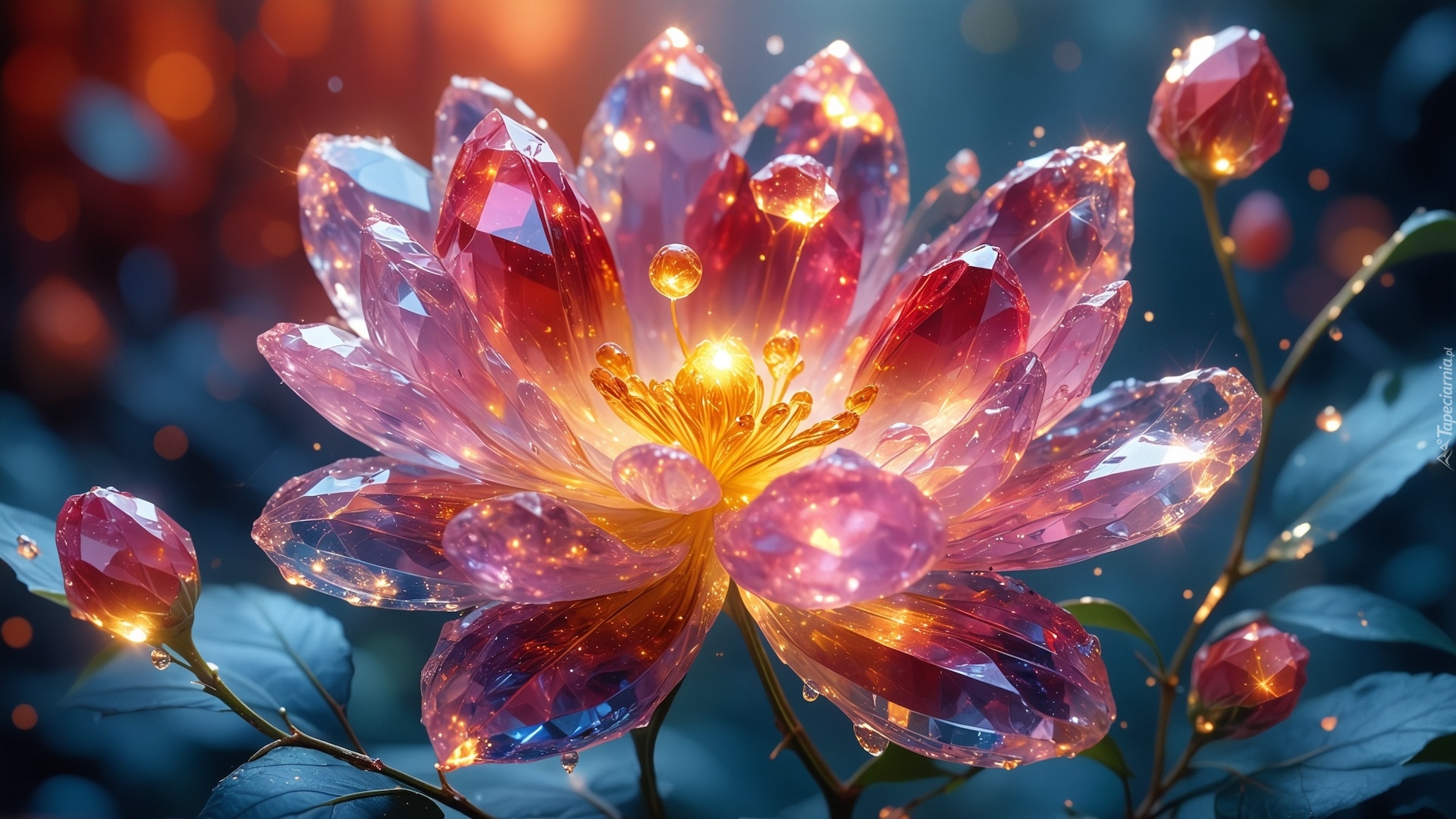 Edytor tapety: Rozświetlony kryształowy kwiat z pąkami w zbliżeniu