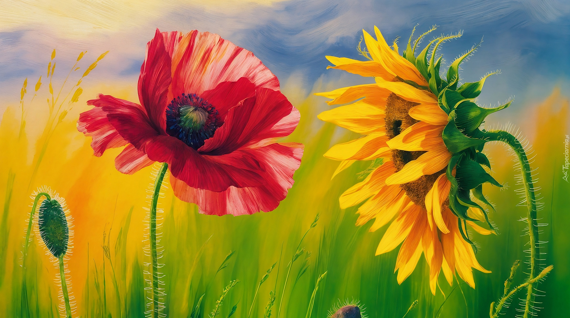 Edytor tapety: Słonecznik z makiem w grafice komputerowej