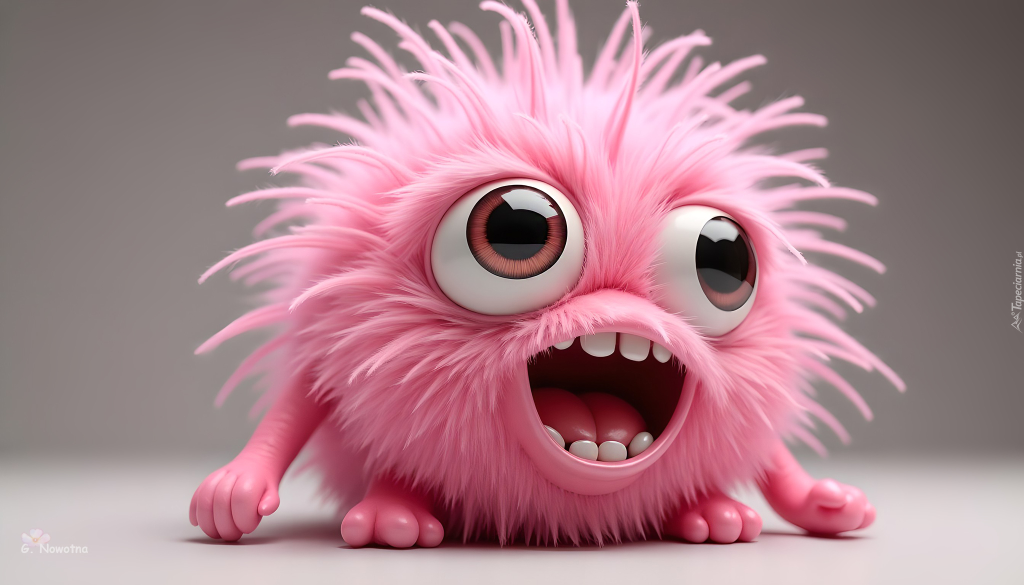 Edytor tapety: Włochaty różowy stworek z otwartymi ustami