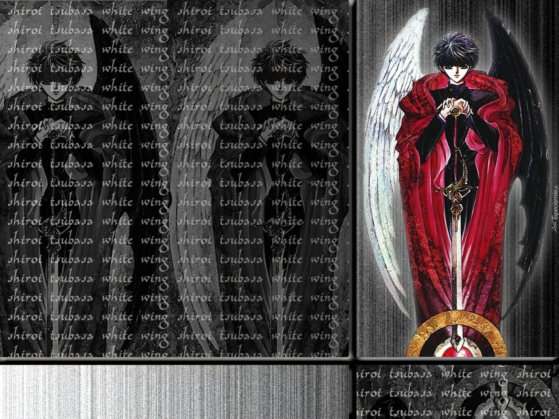 Edytor tapety: X, napisy, skrzydła, postać