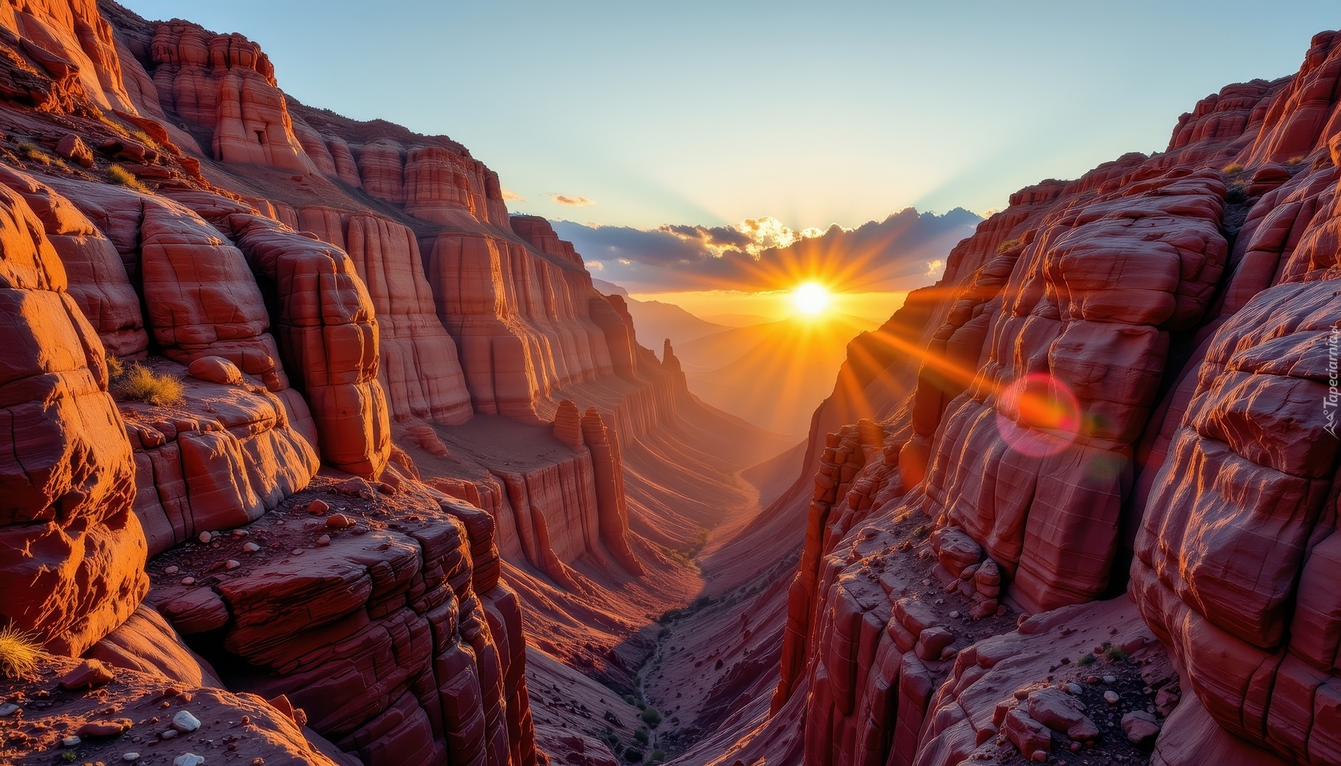 Edytor tapety: Kanion rozświetlony promieniami zachodzącego słońca