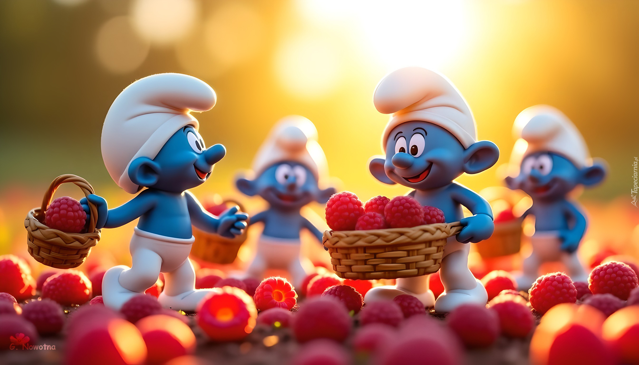 Edytor tapety: Smerfy z koszykami malin