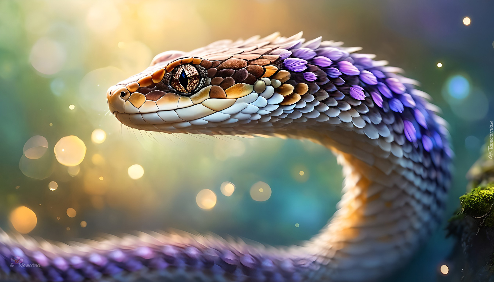 Edytor tapety: Wąż z kolorowymi łuskami w grafice