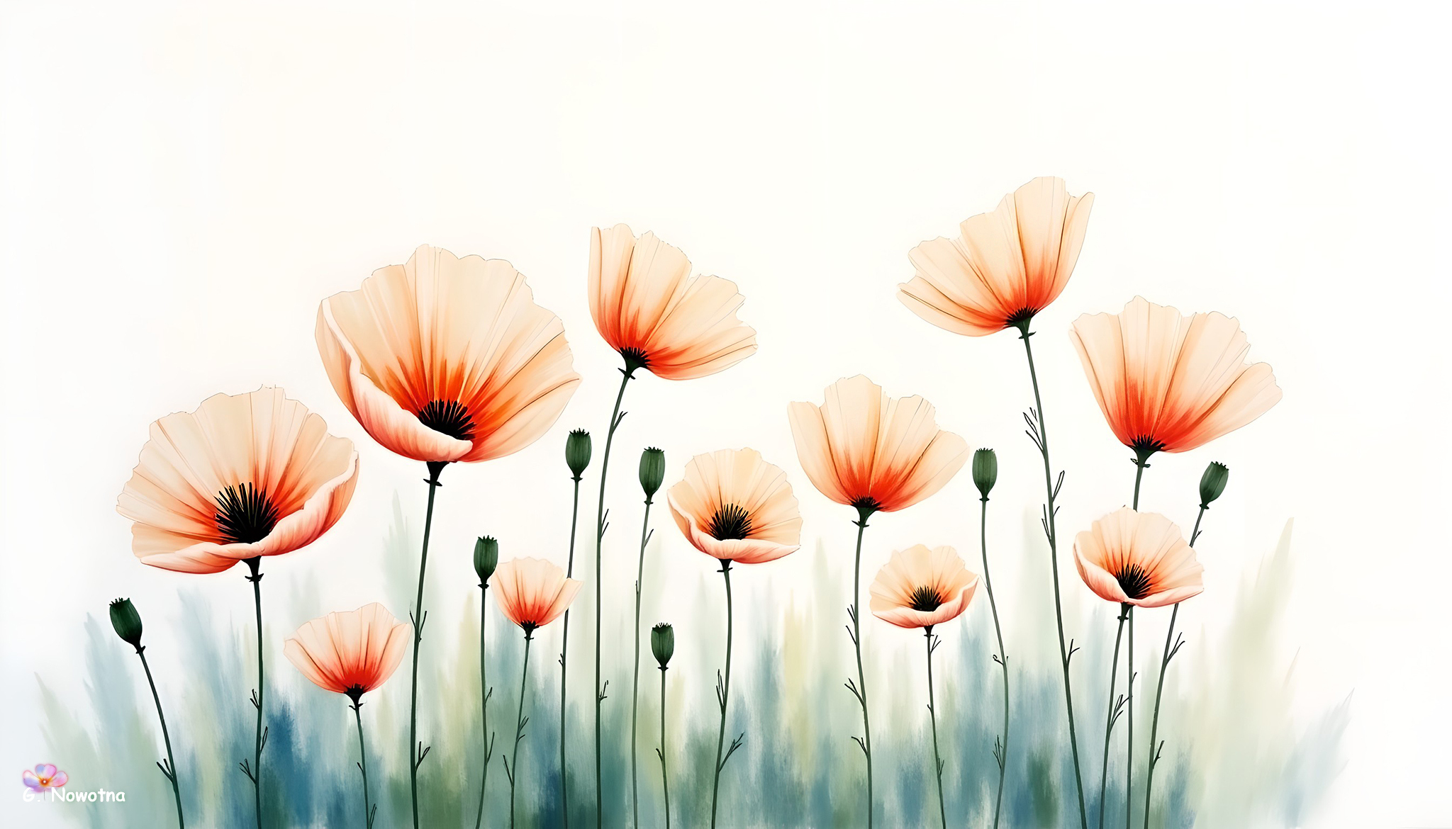 Edytor tapety: Rozkwitnięte maki na białym tle
