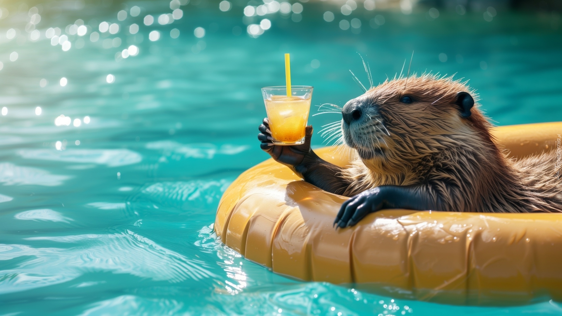 Edytor tapety: Bóbr z kołem ratunkowym i napojem