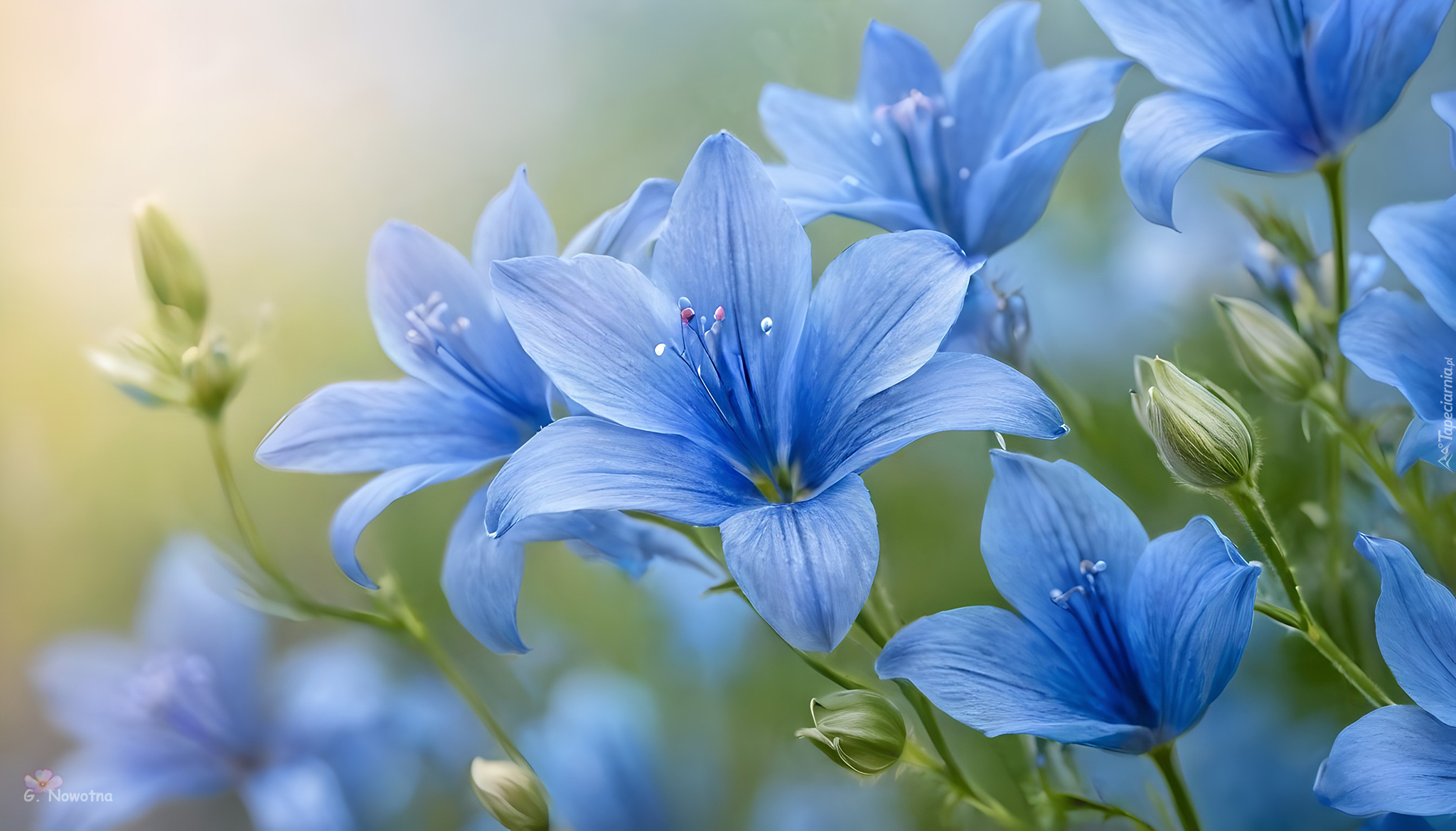 Edytor tapety: Niebieskie kwiaty z pąkami w zbliżeniu