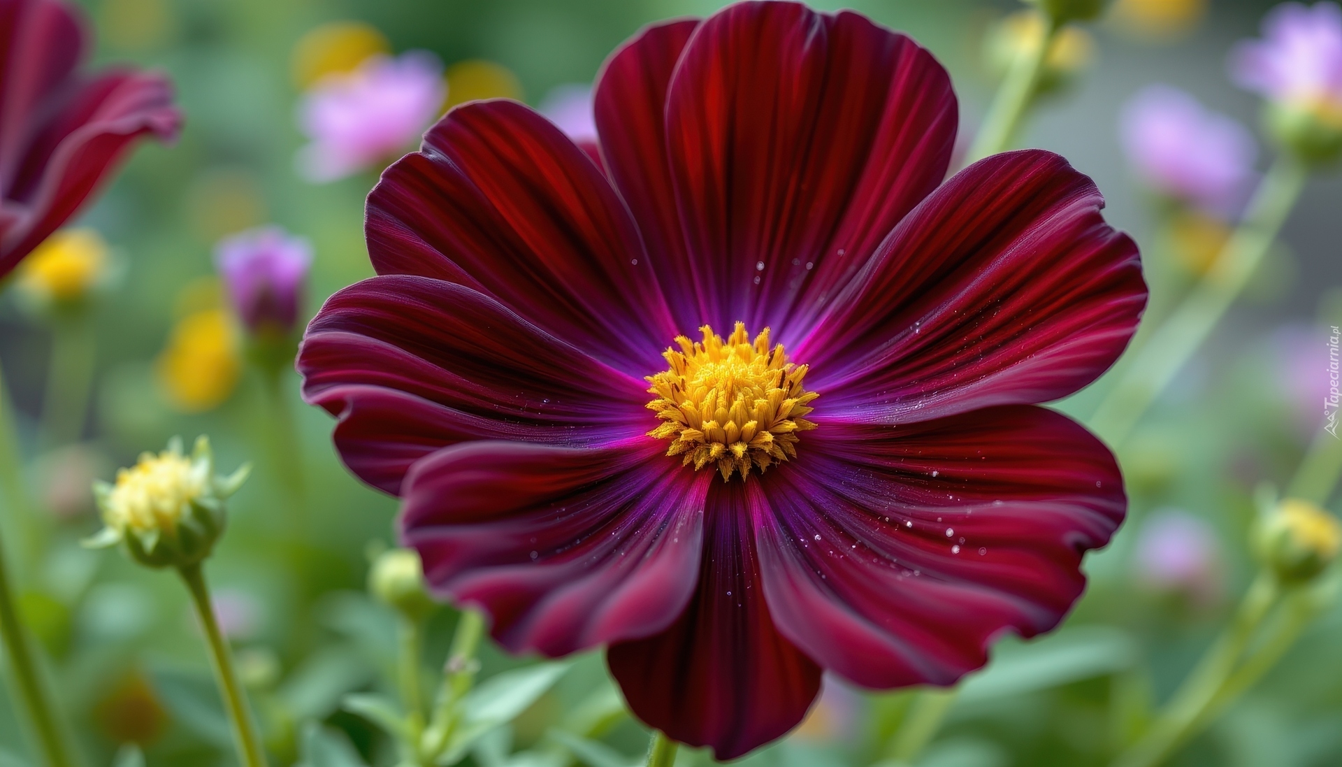 Edytor tapety: Ciemnoczerwona kosmea w zbliżeniu