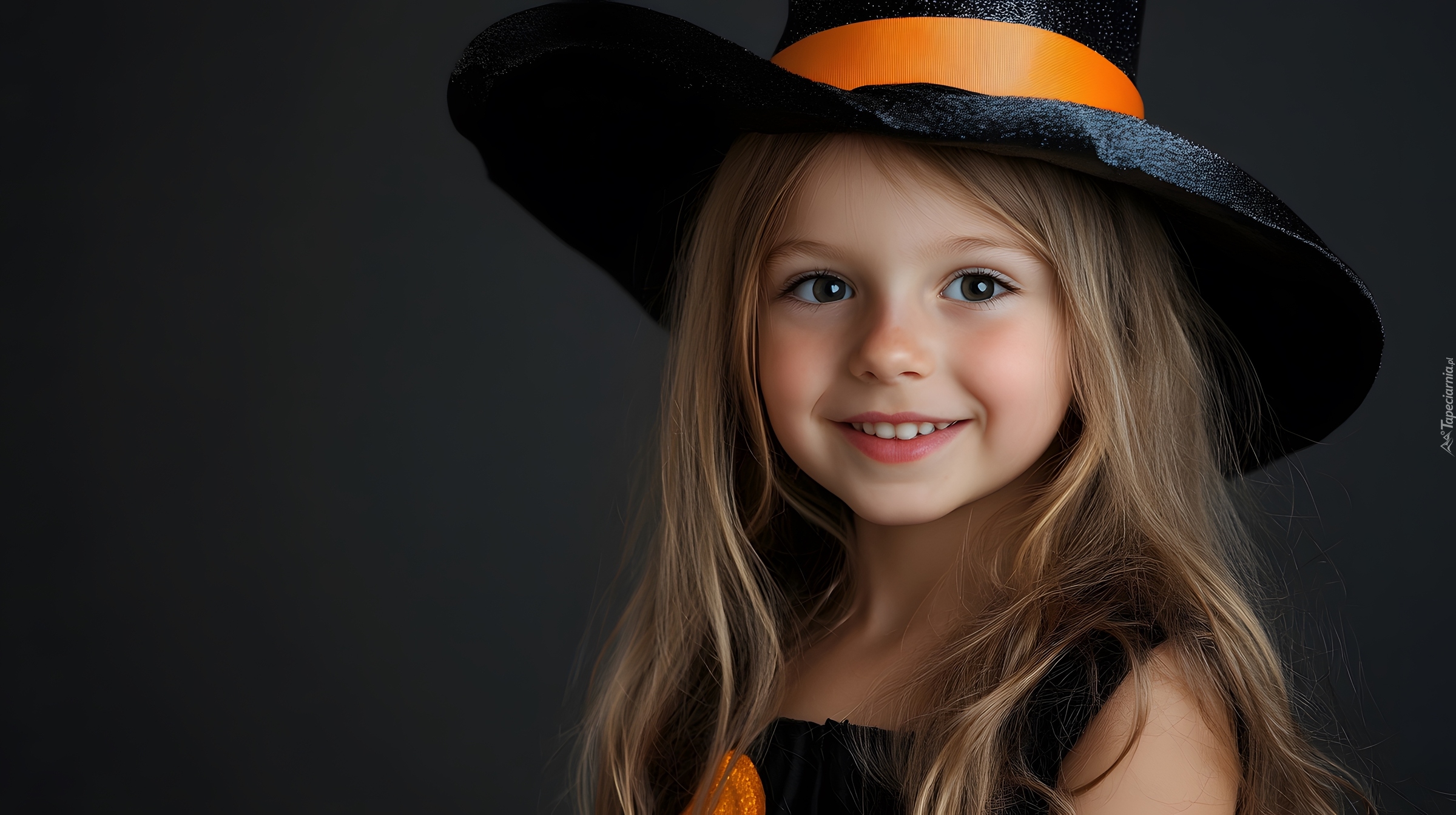 Edytor tapety: Uśmiechnięta długowłosa dziewczynka w kapeluszu