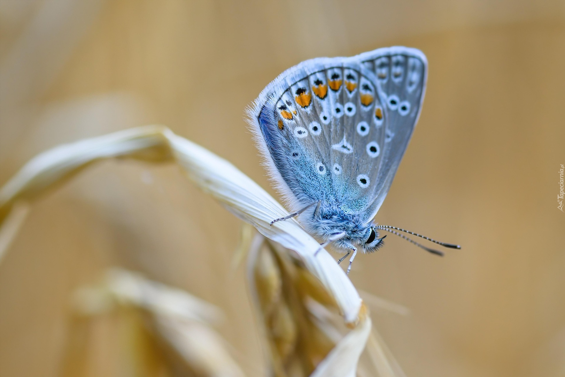 Edytor tapety: Niebieski modraszek ikar na suchej roślinie