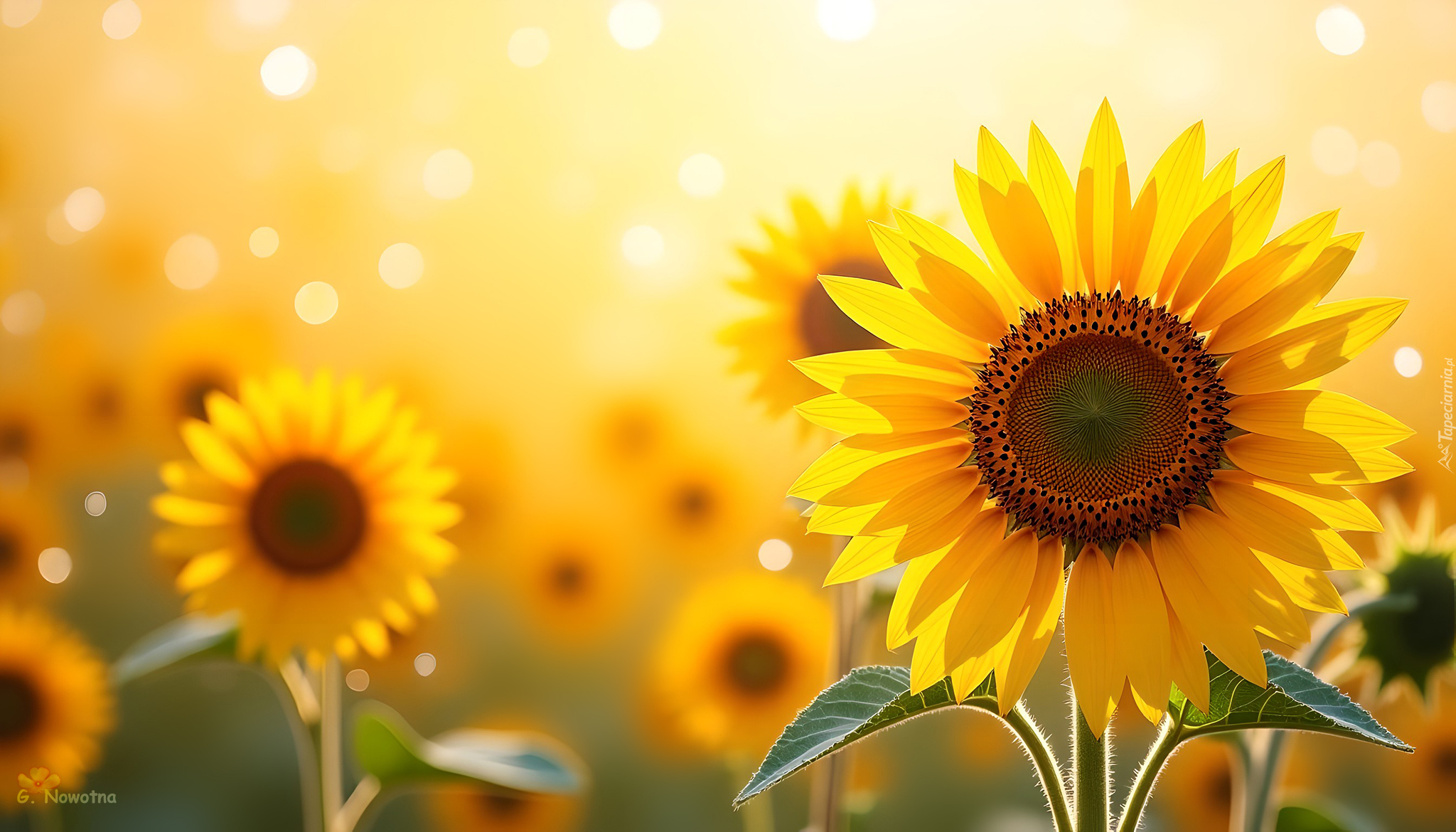 Edytor tapety: Kwitnące słoneczniki na słonecznym tle